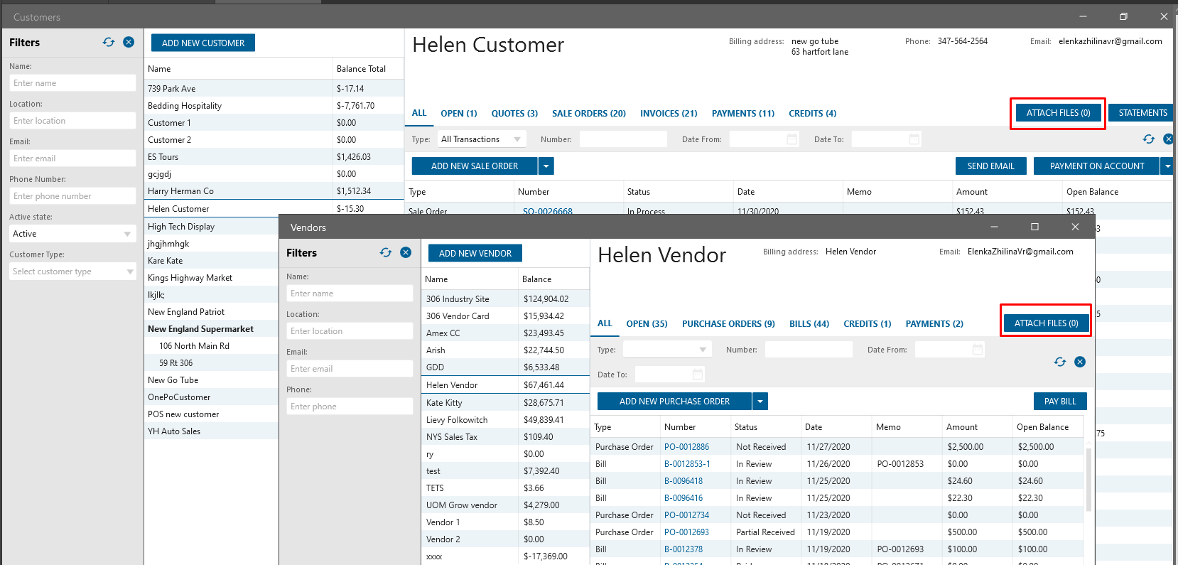 Attachments added to Vendor/Customer list forms
