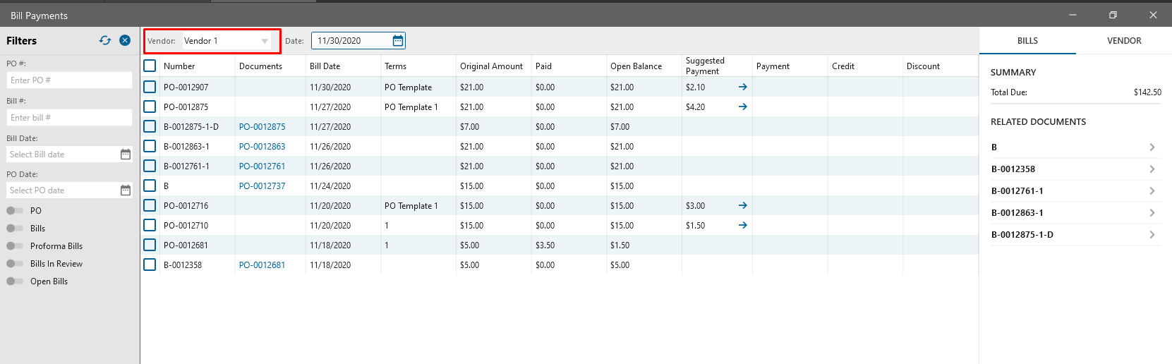 Filtering by Vendor should work on the Pay Bills form