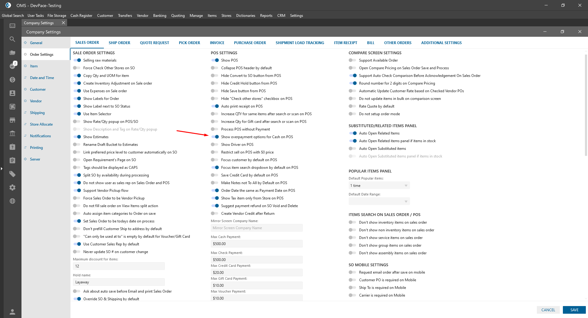 - Company settings -> Sale Order -> Turn ON “Show overpayment options for Cash on POS“;