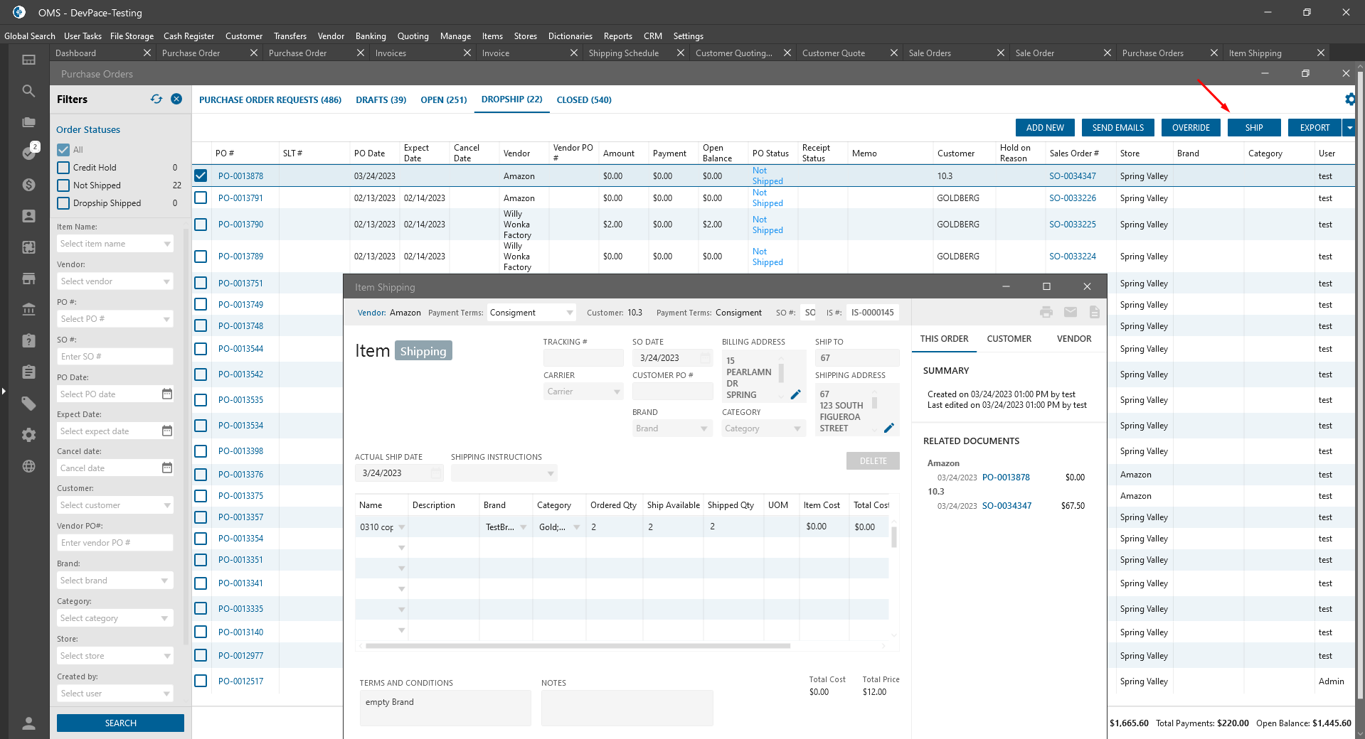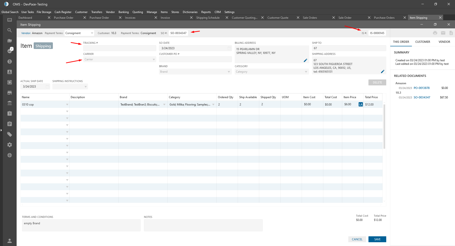 - after clicking on the button -> the “item Shipping” edit form is always displayed.