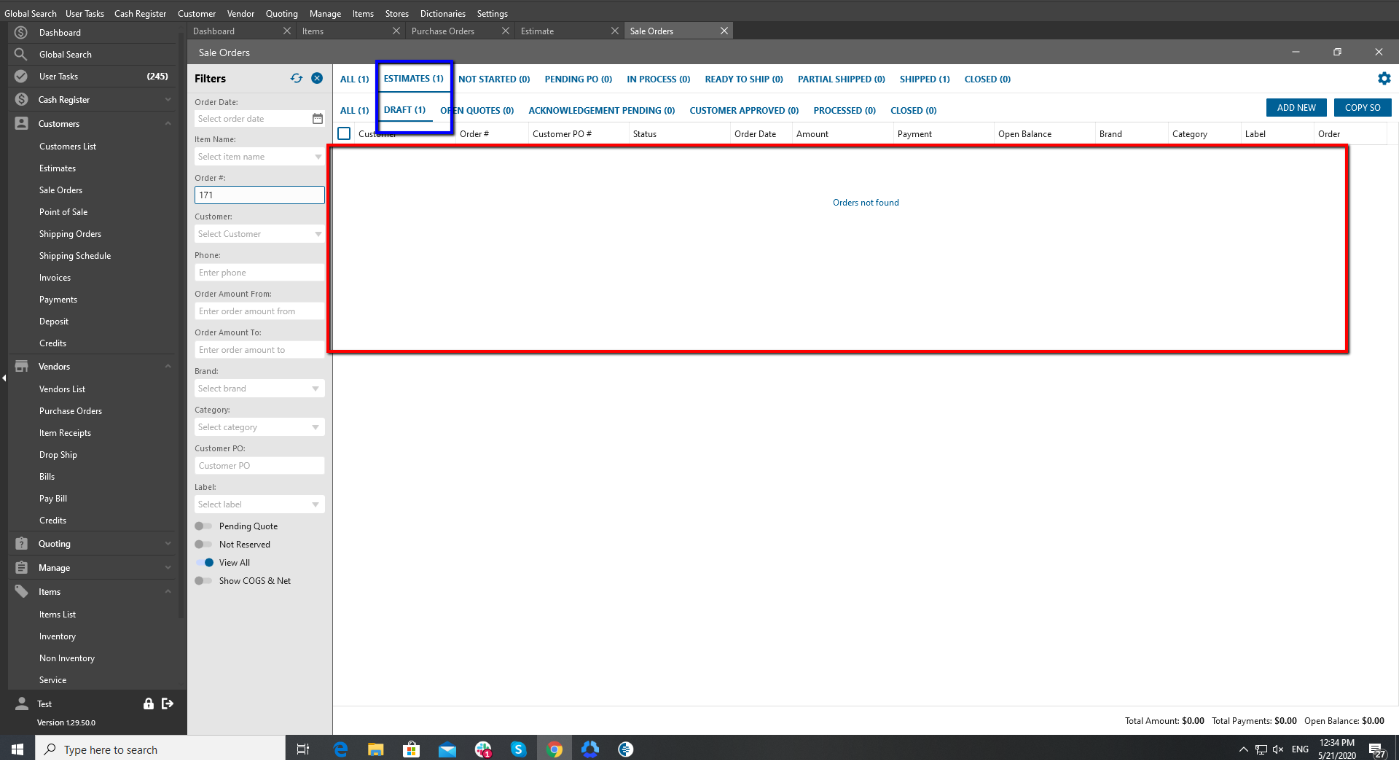 - Create Estimate, add some Item, for example ES-0030171-D⇒ Save Request