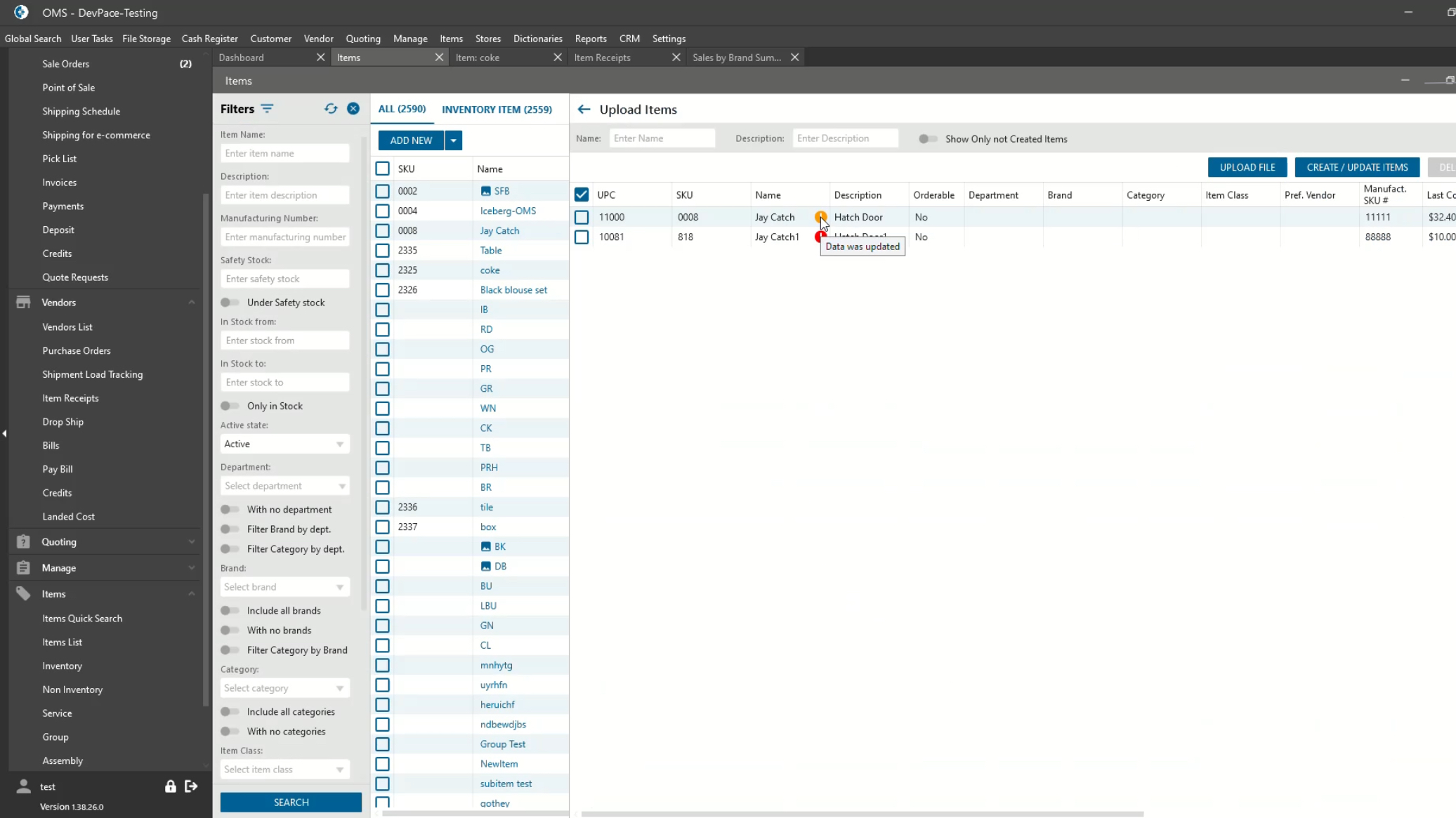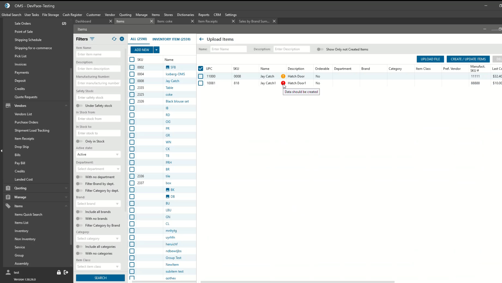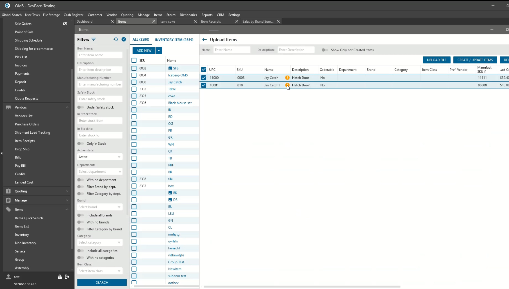 Item List form -> “Item Overview” multi-button -> Upload Items button: