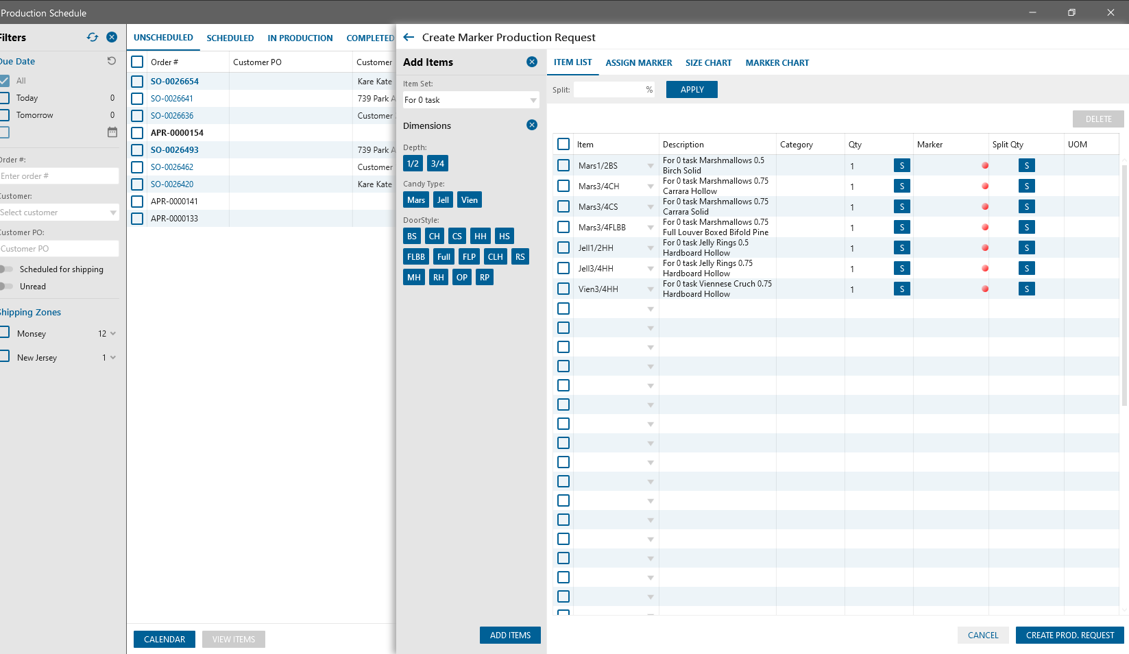 Production Schedule -> Create Marker Prod. Request