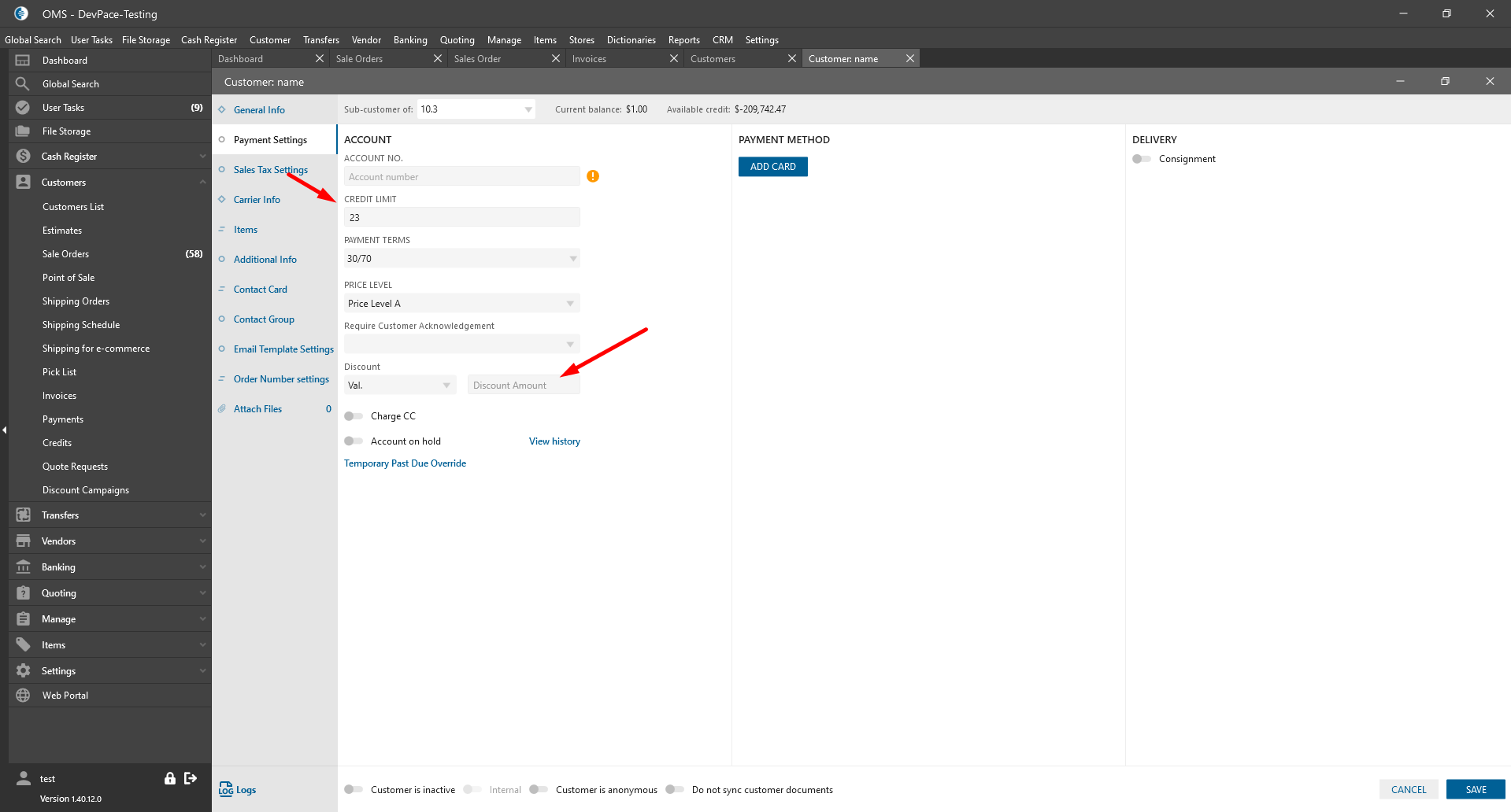 - “Credit Limit” field -> was renamed to the “Discount Amount”;