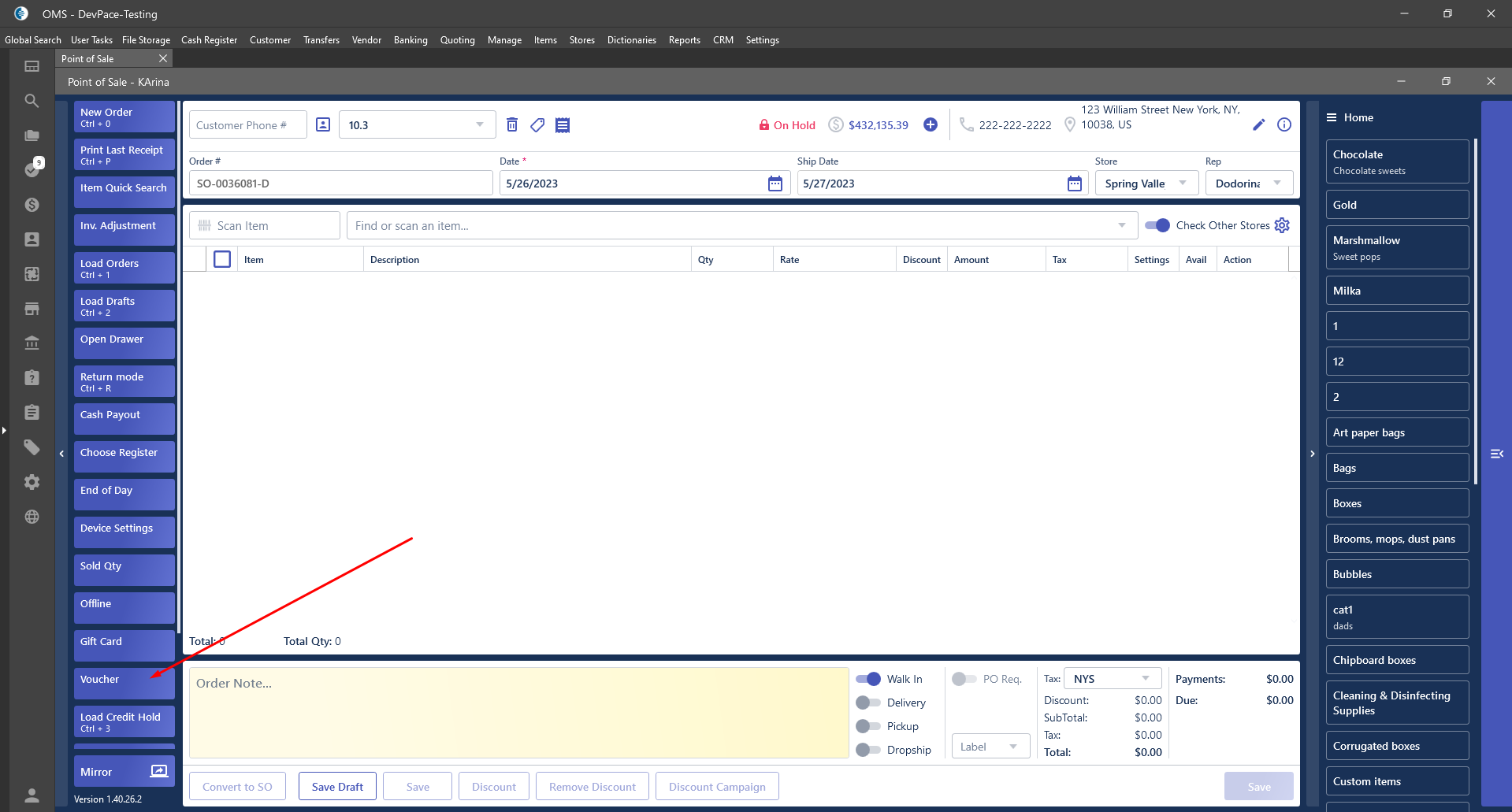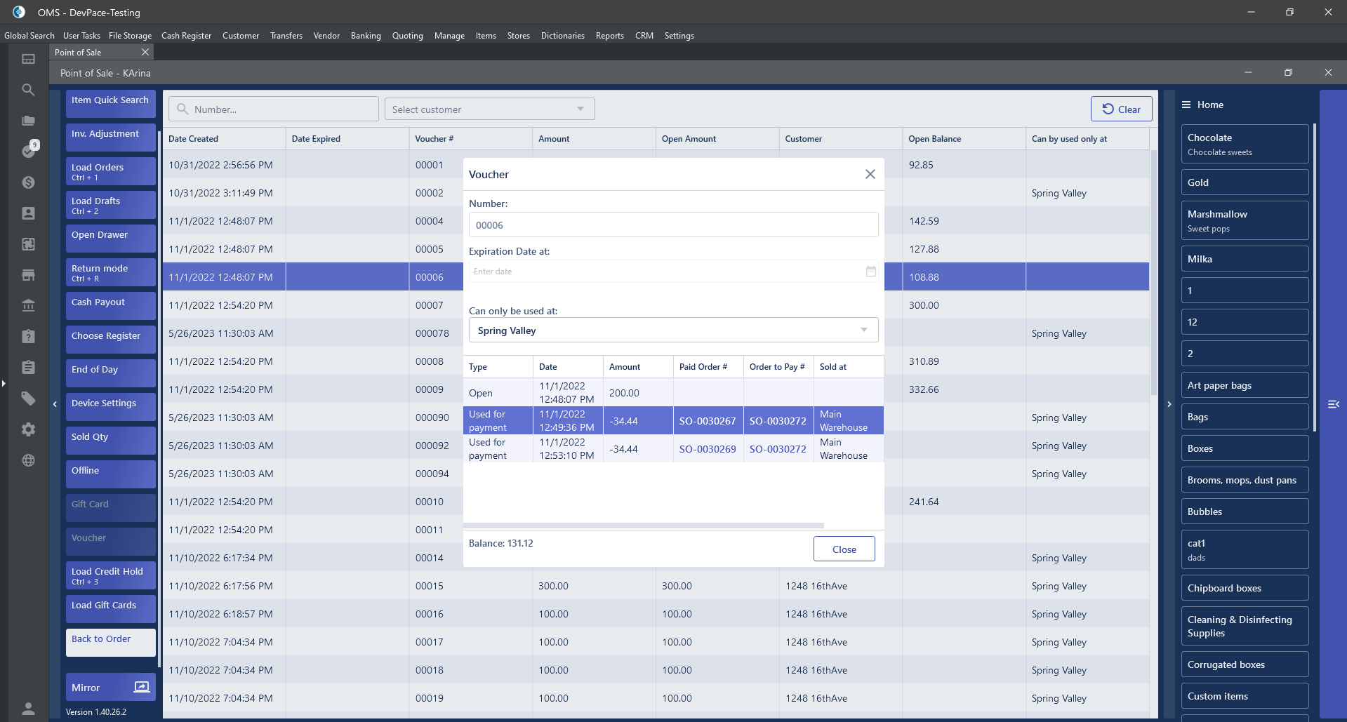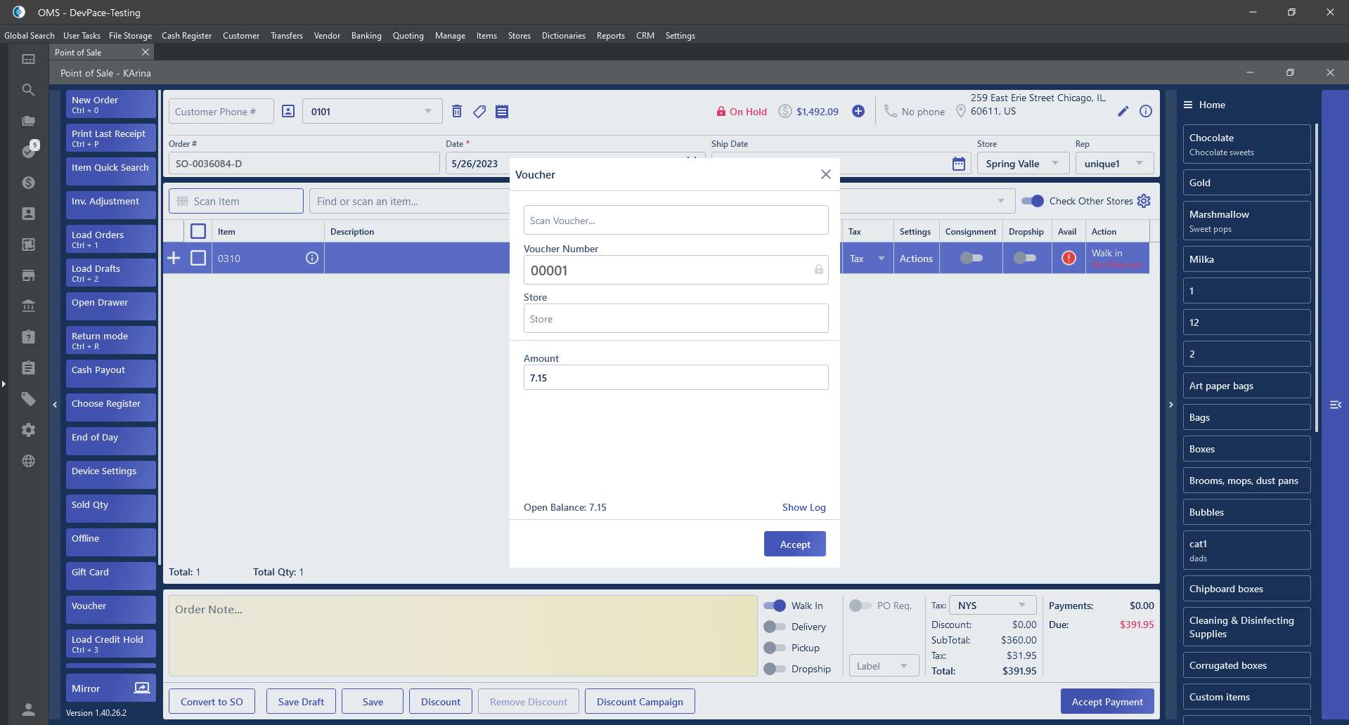 - if the user clicks on the Accept Payment button and selected Voucher with not the same store as on the Order -> the OMS message is displayed: