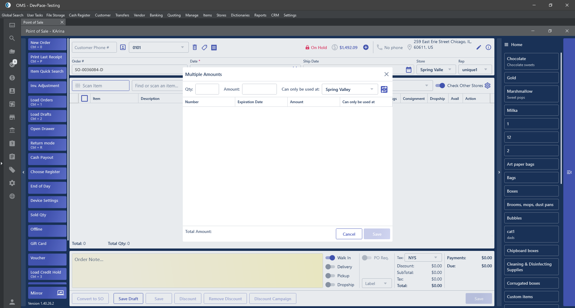 - after clicking on the button -> the “Multiple Amounts” pop-up is opened;