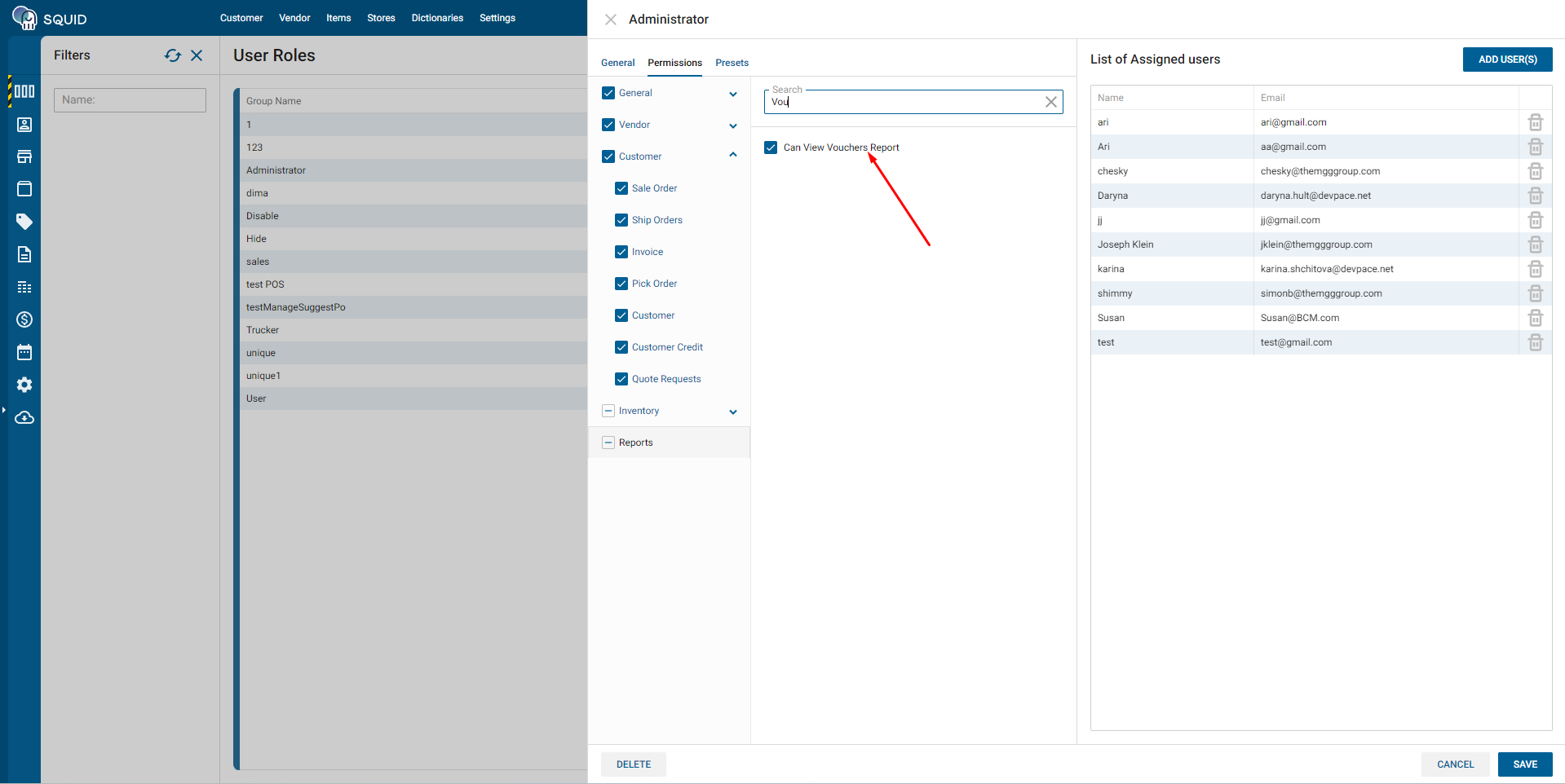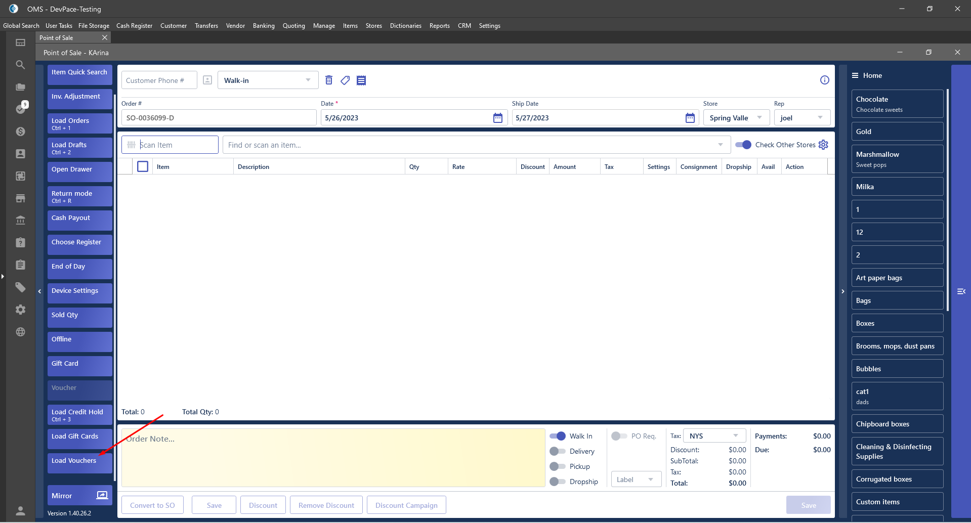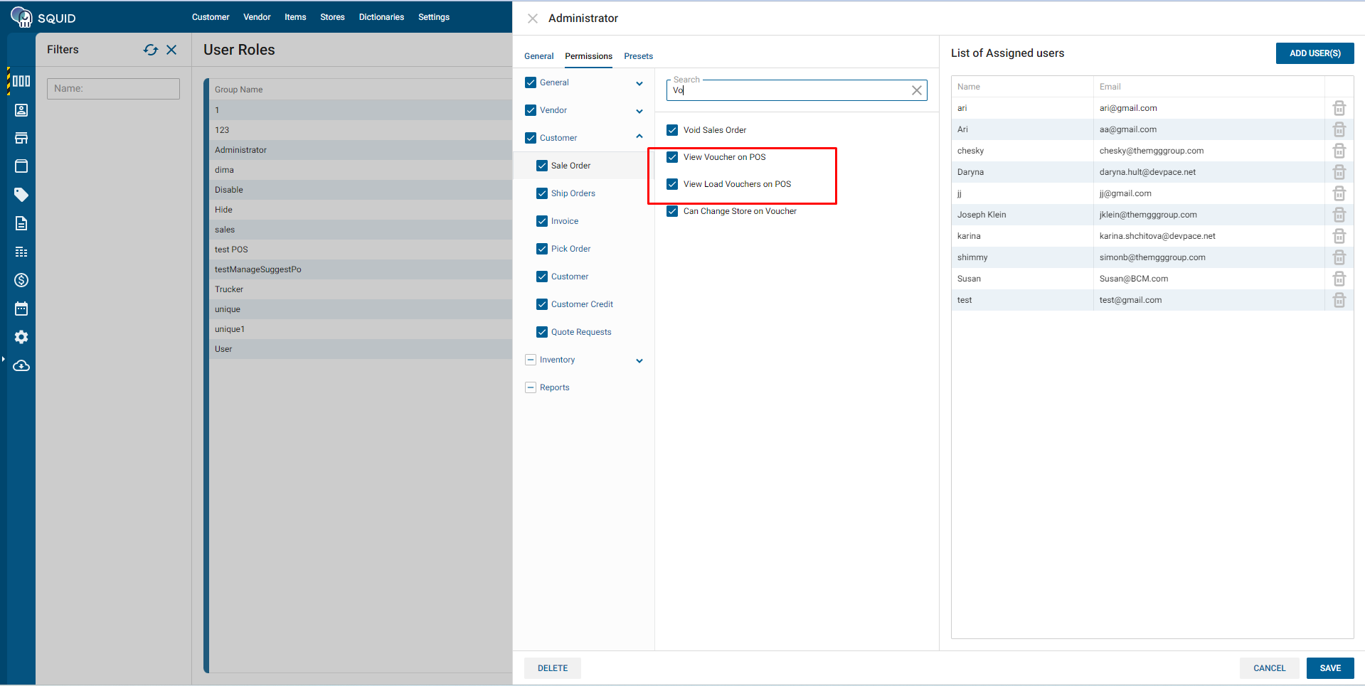 - the “Load Vouchers” action is hidden on the Left Menu panel