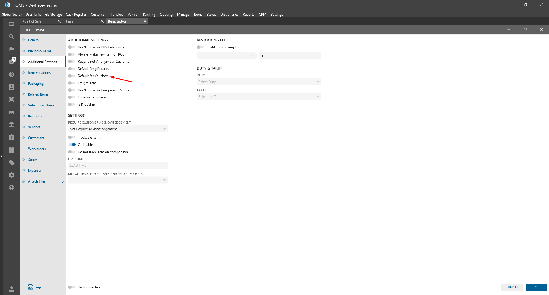 - ““Can only be used at to” is empty by default for Voucher/Gift Card” checkbox:
