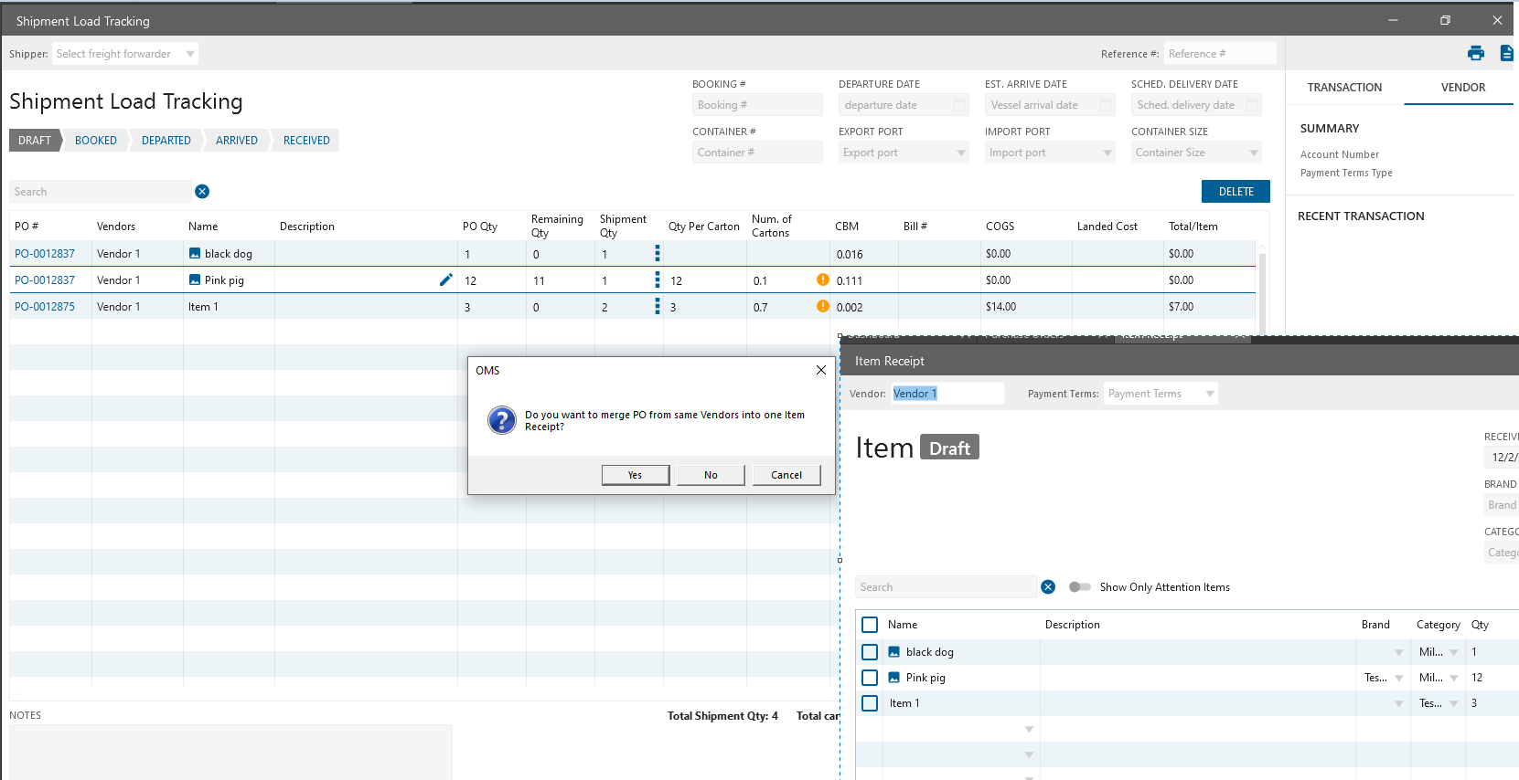 If in Merge pop-up select “Merge PO from the same Vendor into one IRC”, should be created one IRC