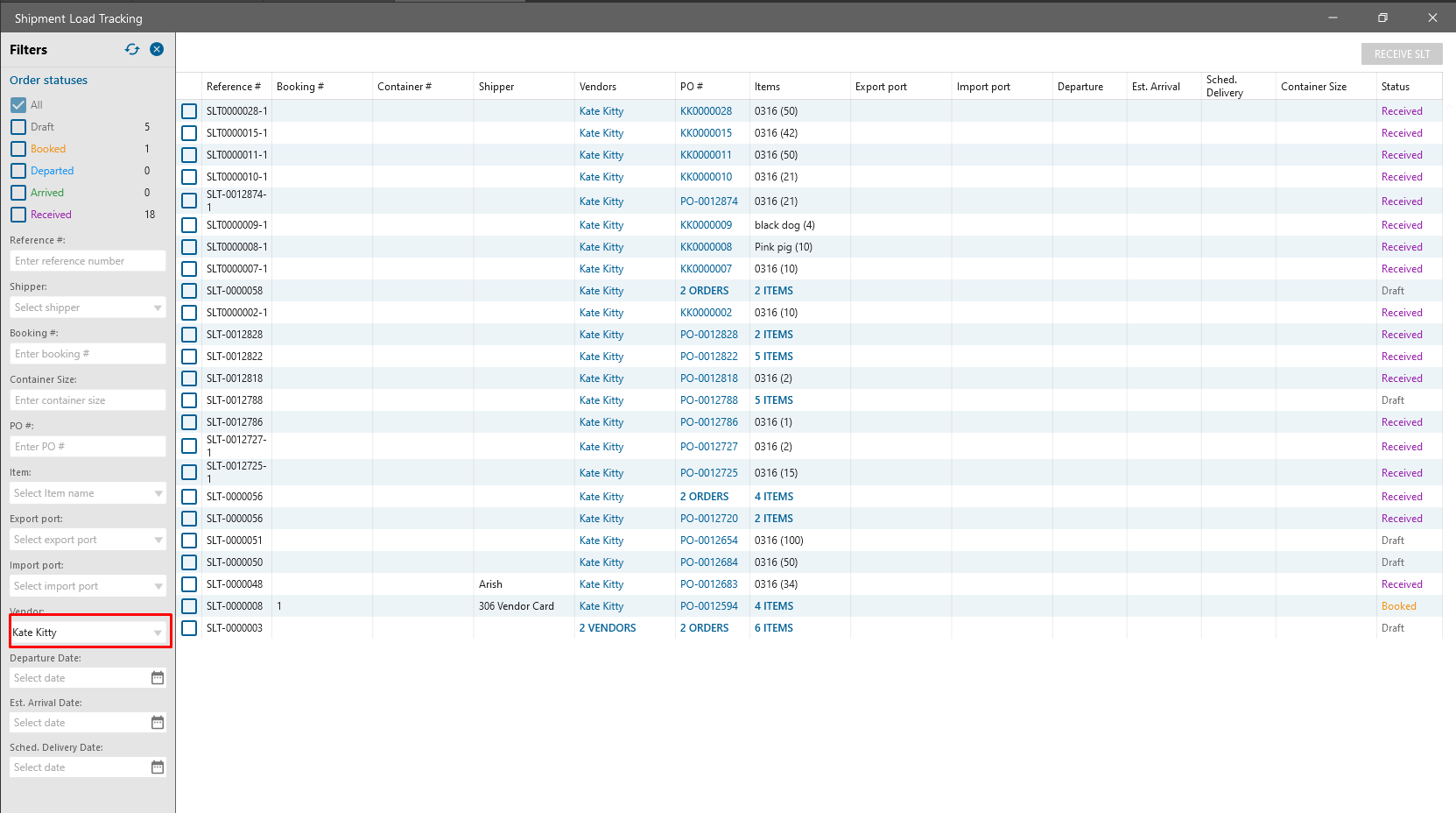 “Vendor” filter should work correctly and after Vendor filtering datagrid should be displayed only for Vendor from the corresponding filter