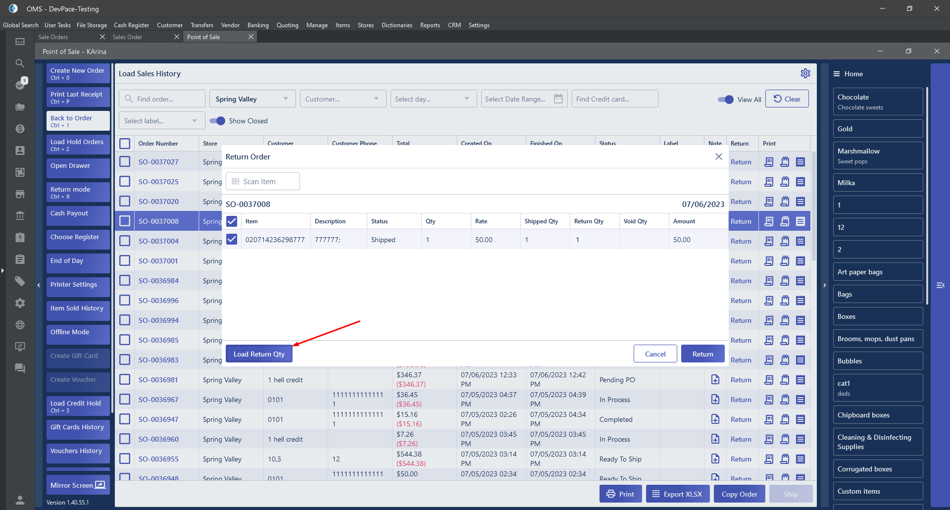 - for all items is prefilled “Return Qty” -> the same as “Rty” value.