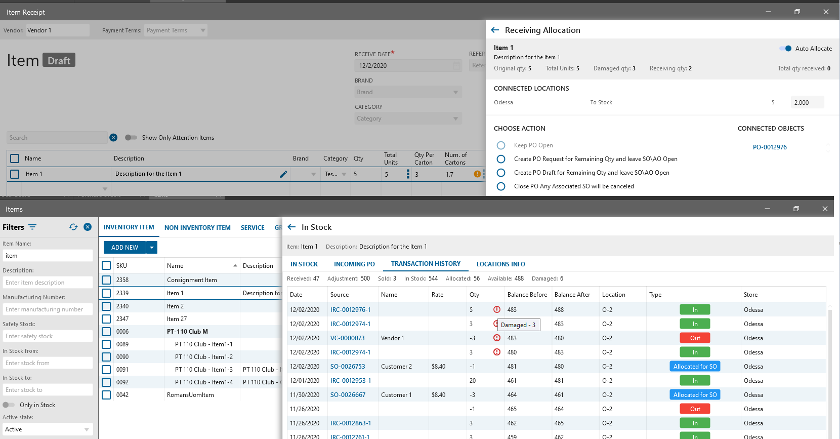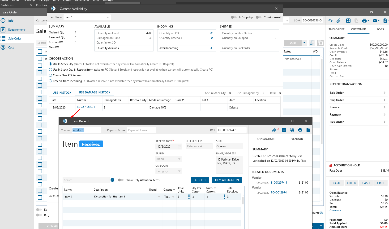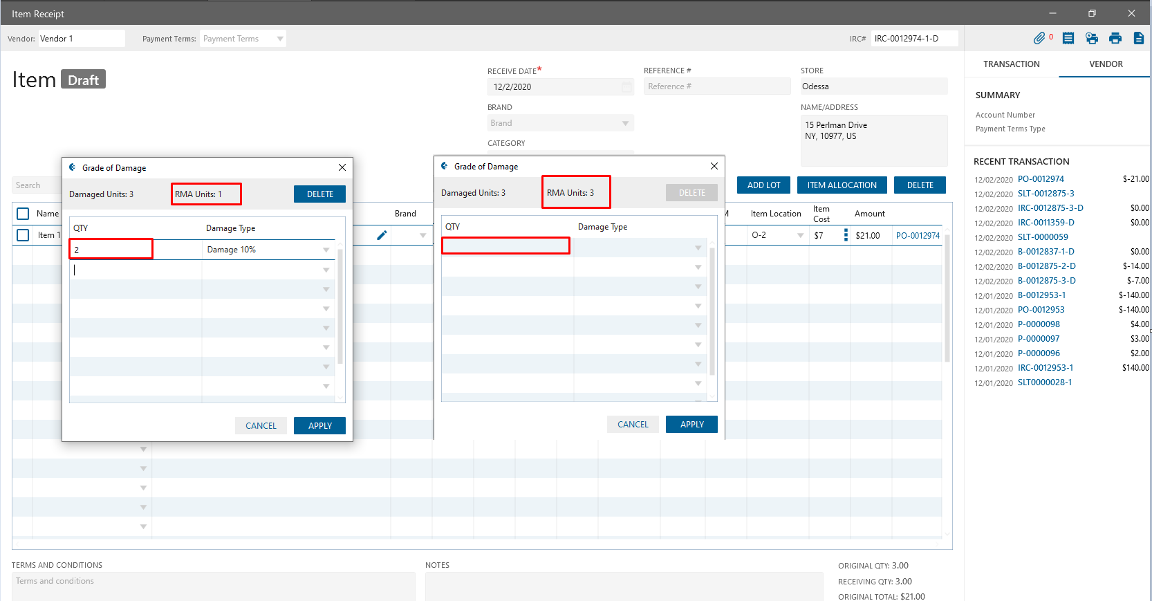 - On IRC edit form enter Damage Qty 10 → click three dots icon