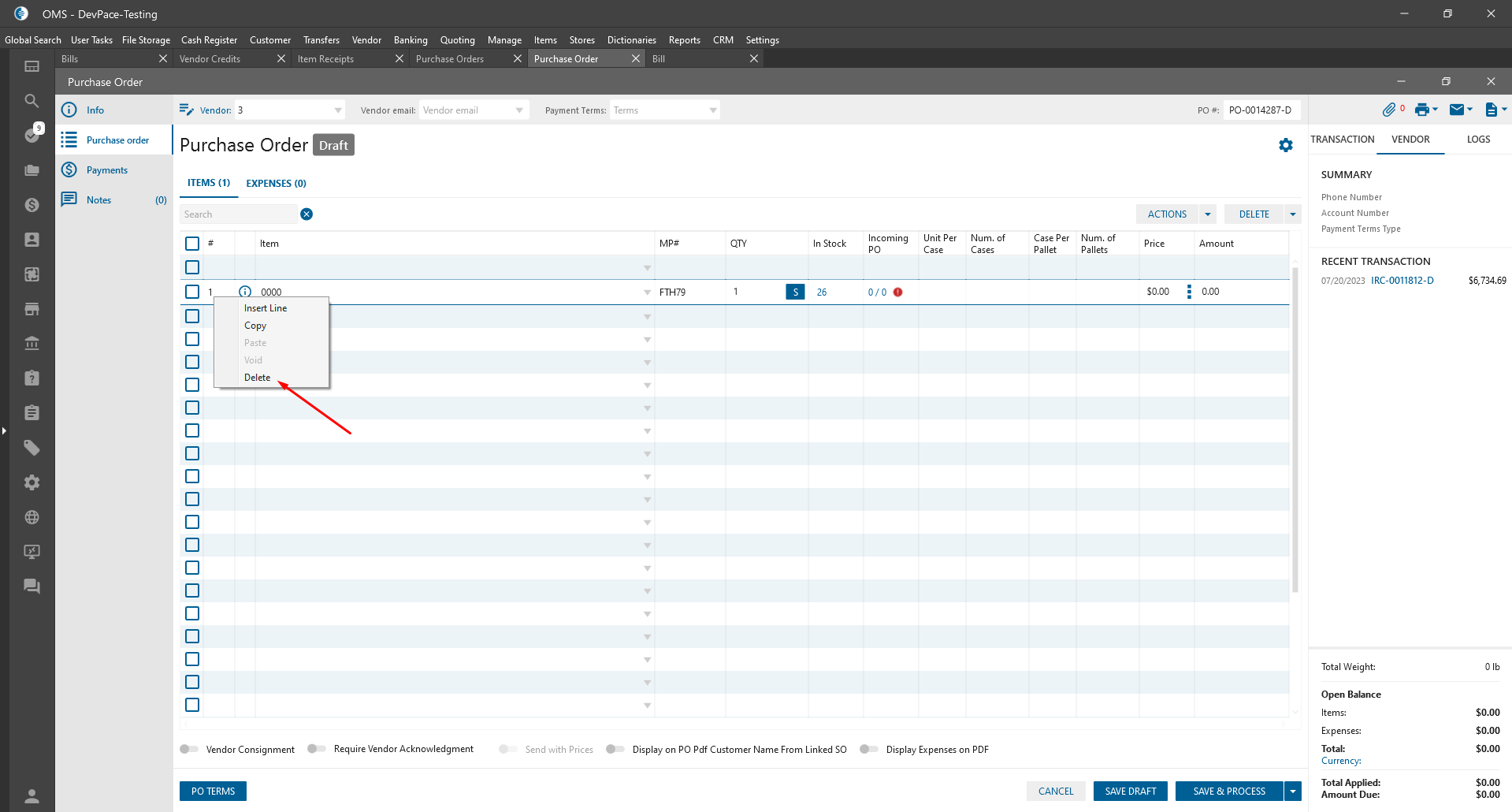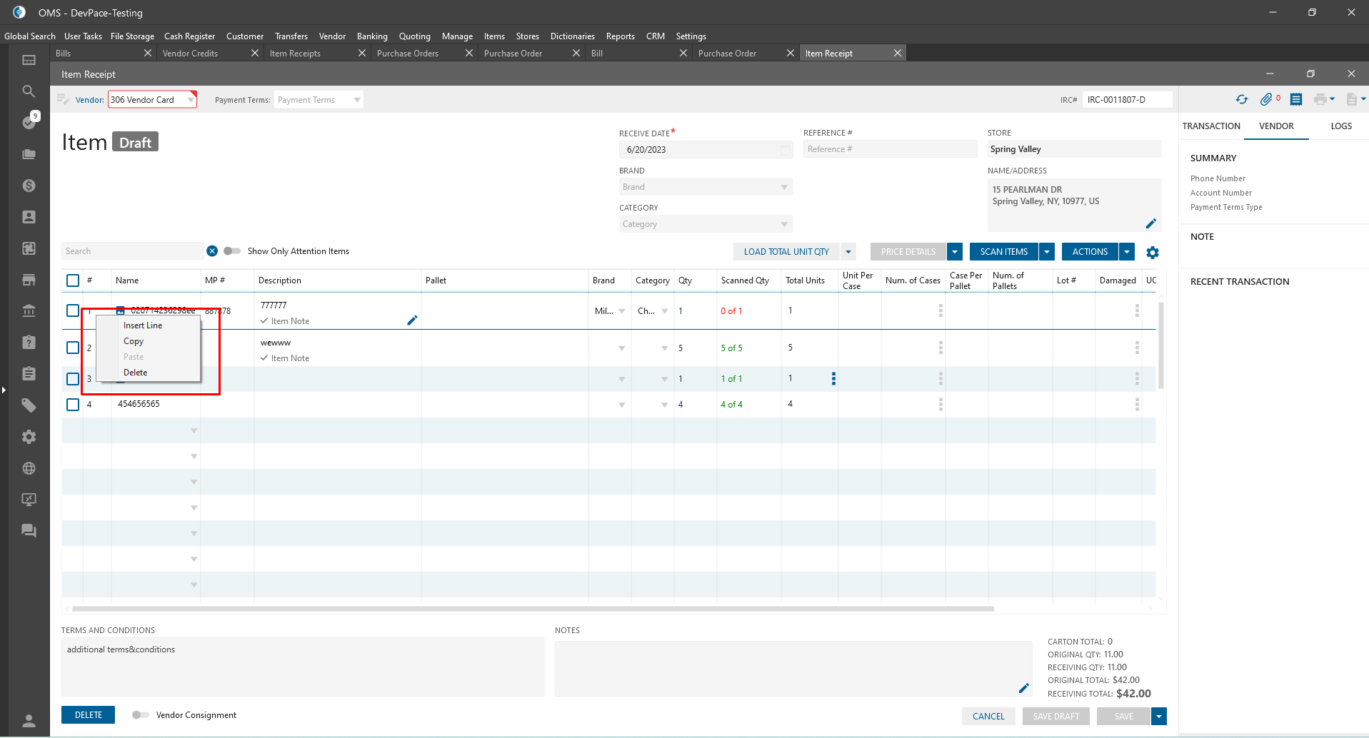 - Insert Line (PO\BIll\Item Receipt\Vendor Credit):