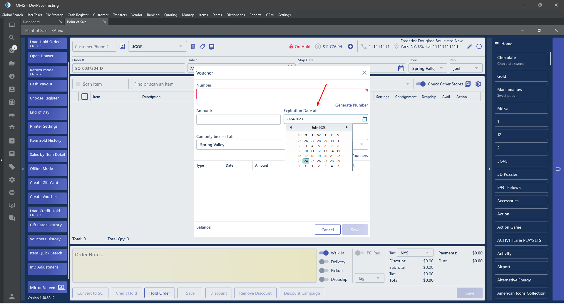- Order edit -> Accept payment -> “Voucher” pop-up: