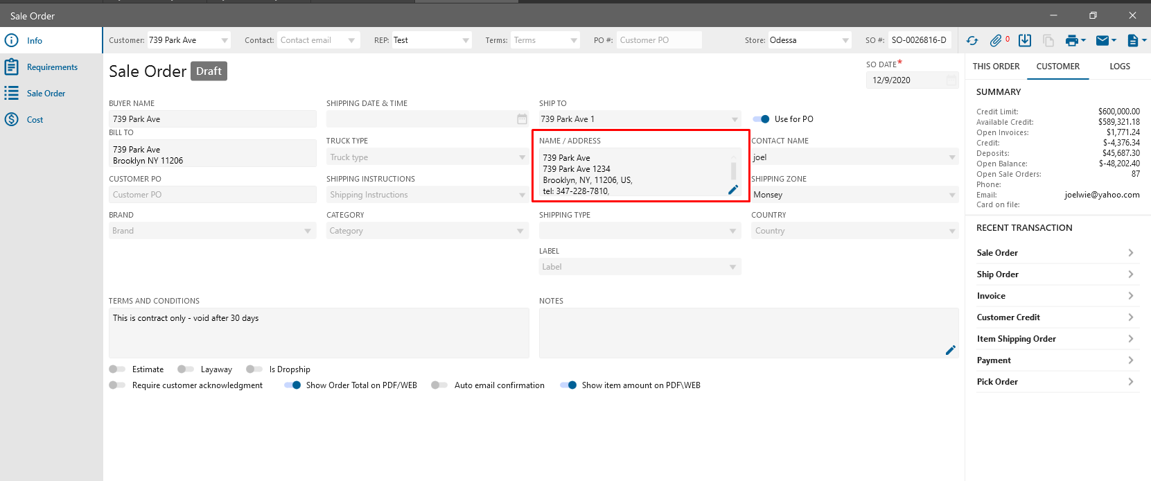 Address Textarea -> disabled, it is possible to change address only via pencil