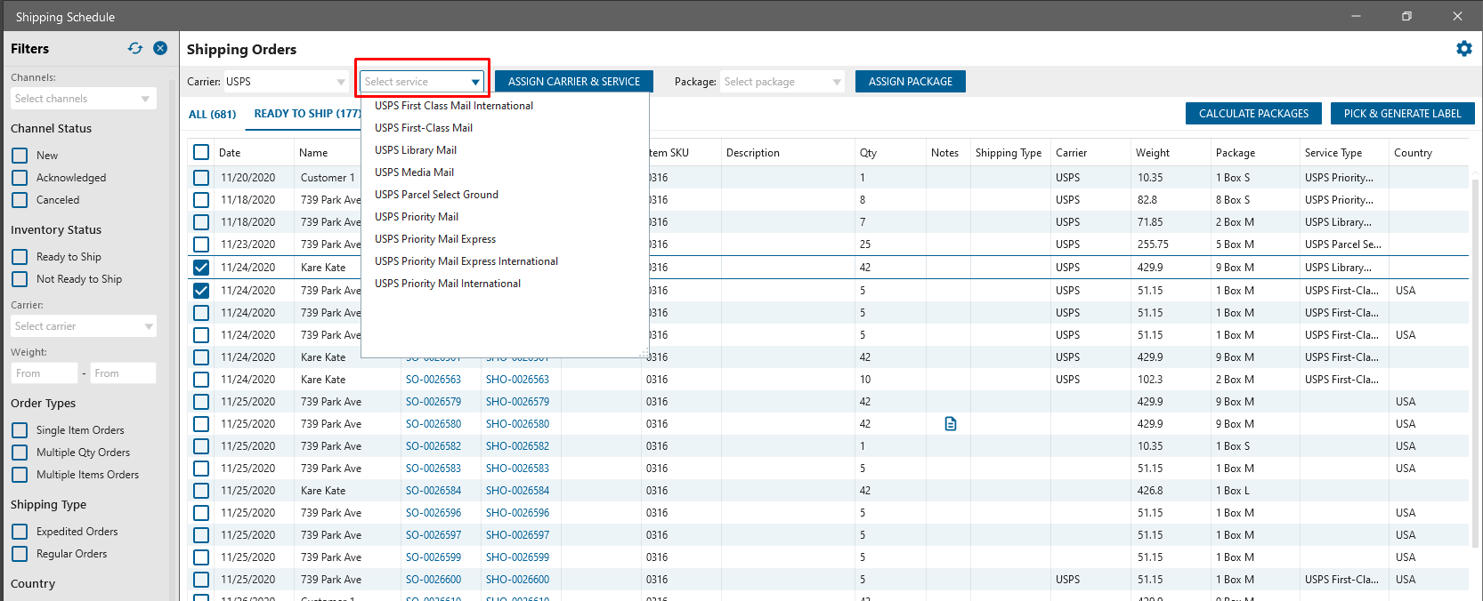 if service is selected, after clicking on the button the service type will be applied to all selected orders in the datagrid