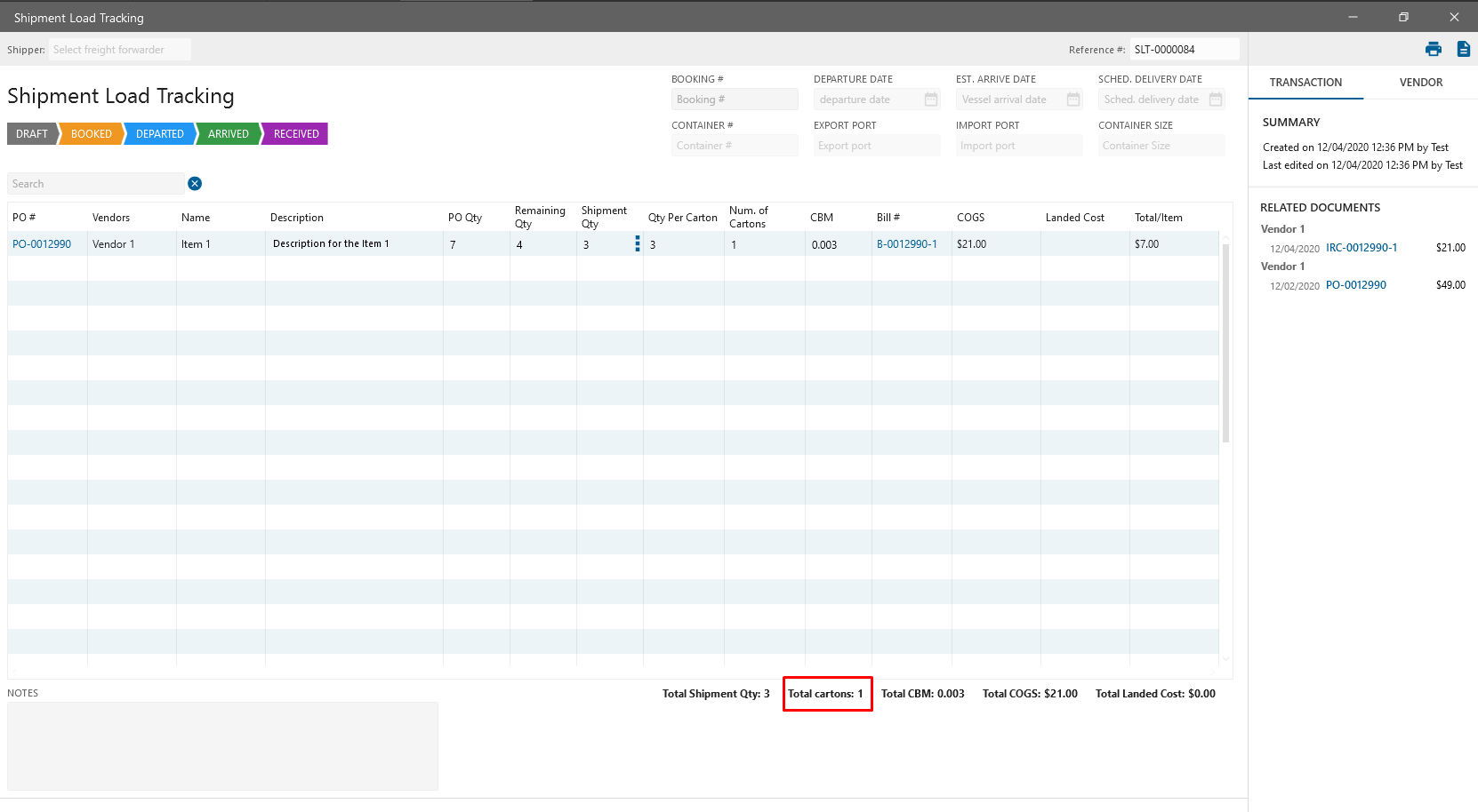 Added Total cartons in the SLT order Totals