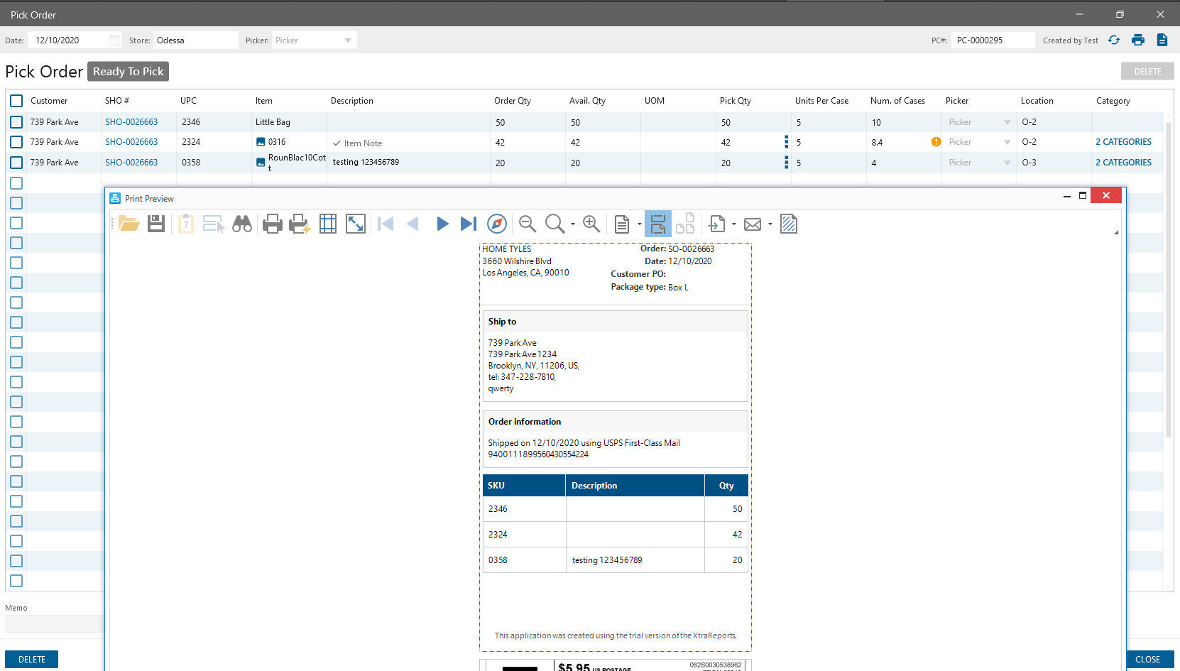 Labels are printed in the same order as displayed on the Pick Order