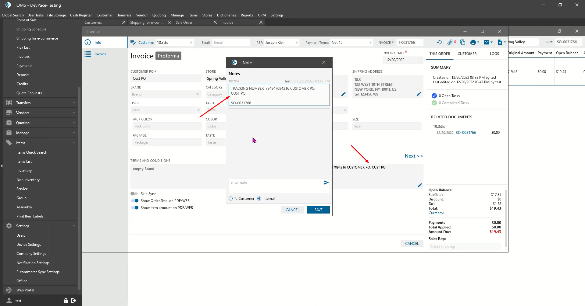 - if to the memo was automatically added a Tracking number -> it is displayed in CAPS;