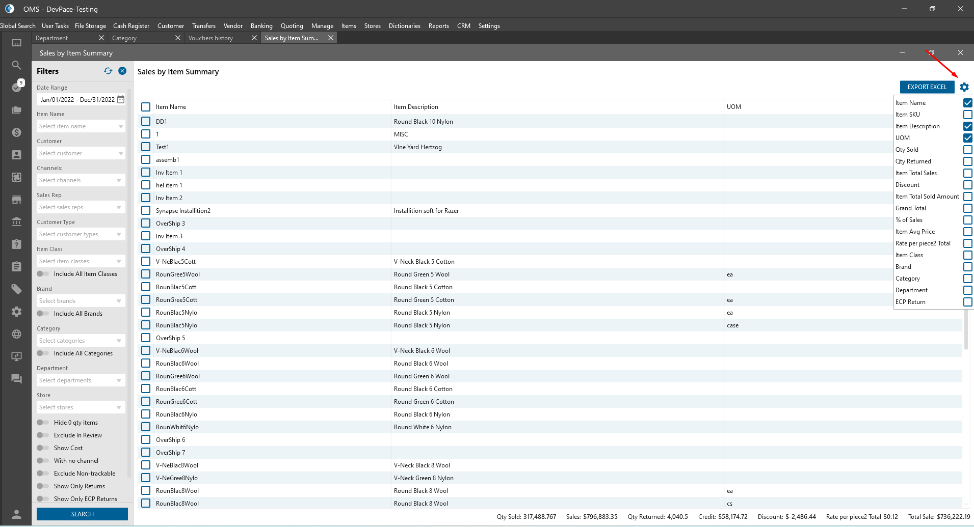 - Item Sold History Report;