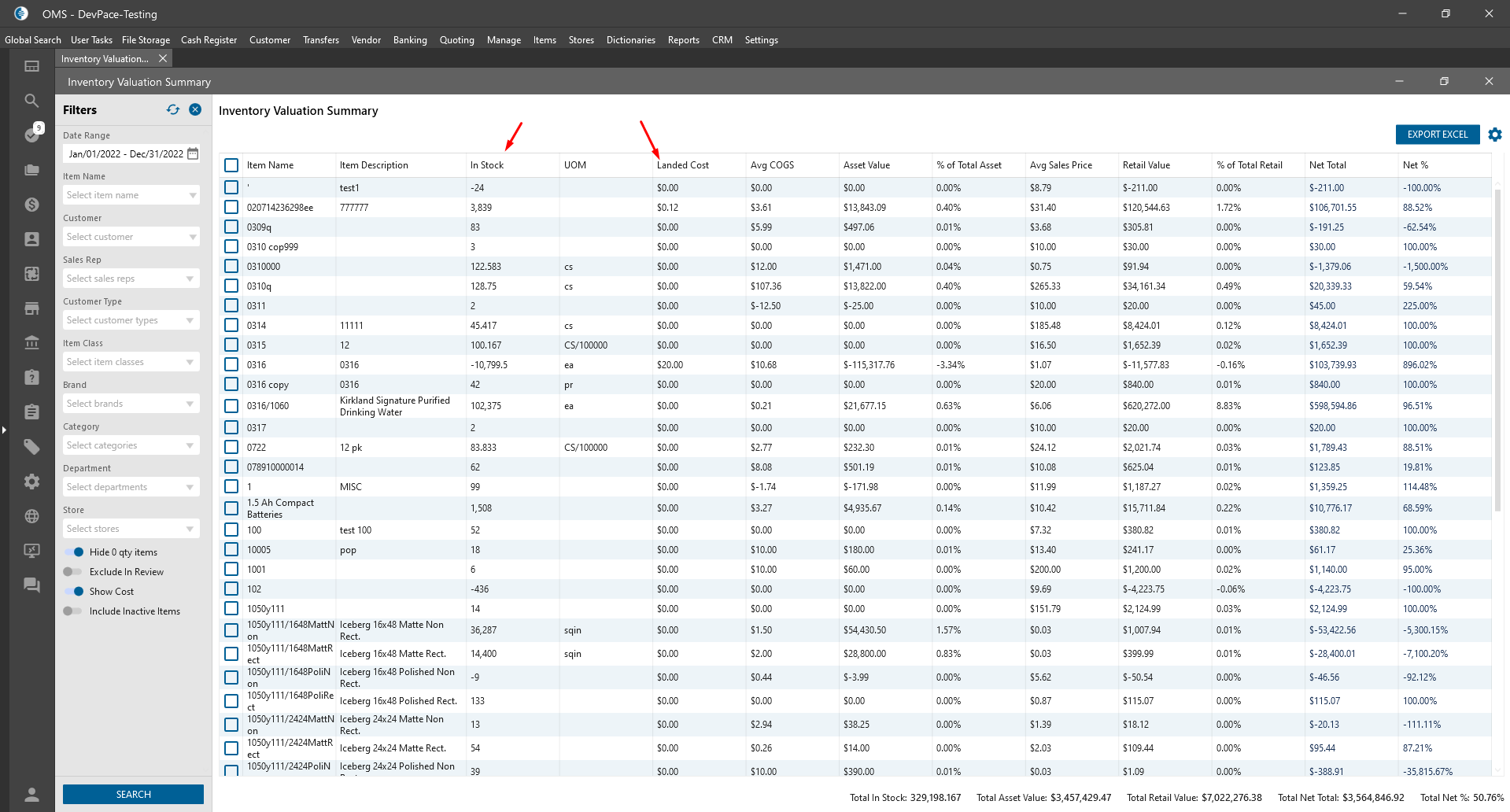 - if the “Show Cost” checkbox is checked -> the column is displayed;