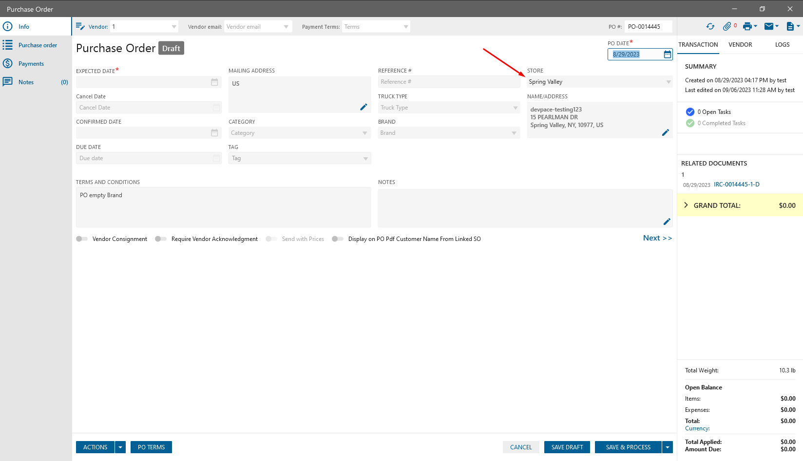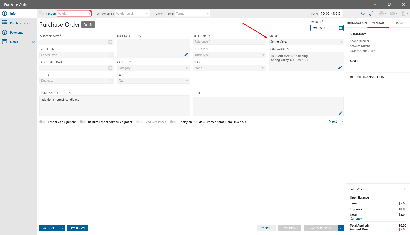 - Click on the “Convert to Draft” button -> PO Draft edit form is opened: