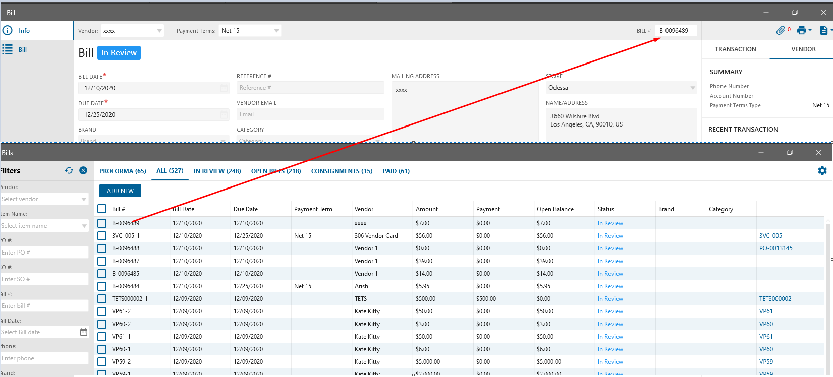 Bill edit. The number of Bill on the edit form and at list form should be the same