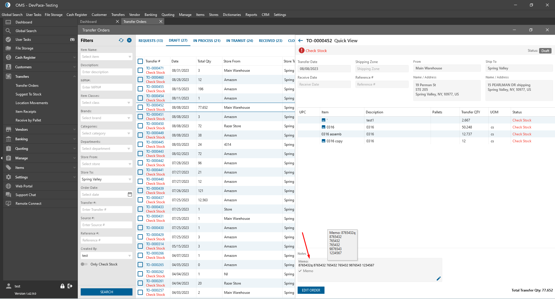 - if was entered memo text -> on the Quick view panel after the “Memo” label is be added “enter” -> means that text is started from the new row;