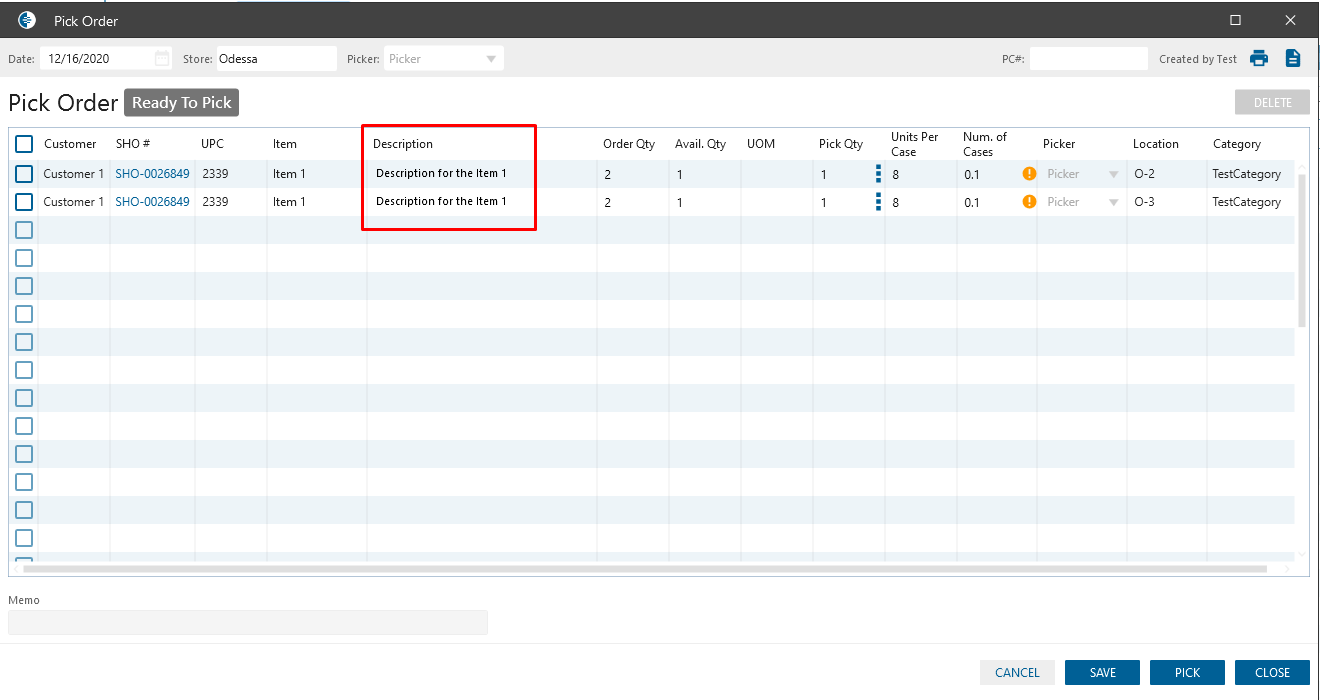 In case SO contains two same Items from different locations, on related Pick Order should be displayed Descriptions for each Item separately