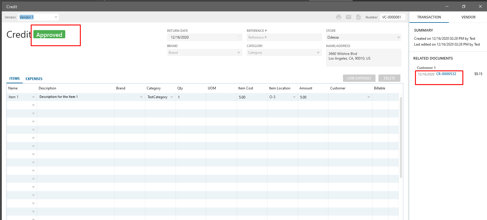 inventories in Customer credit will be allocated automatically to Vendor credit