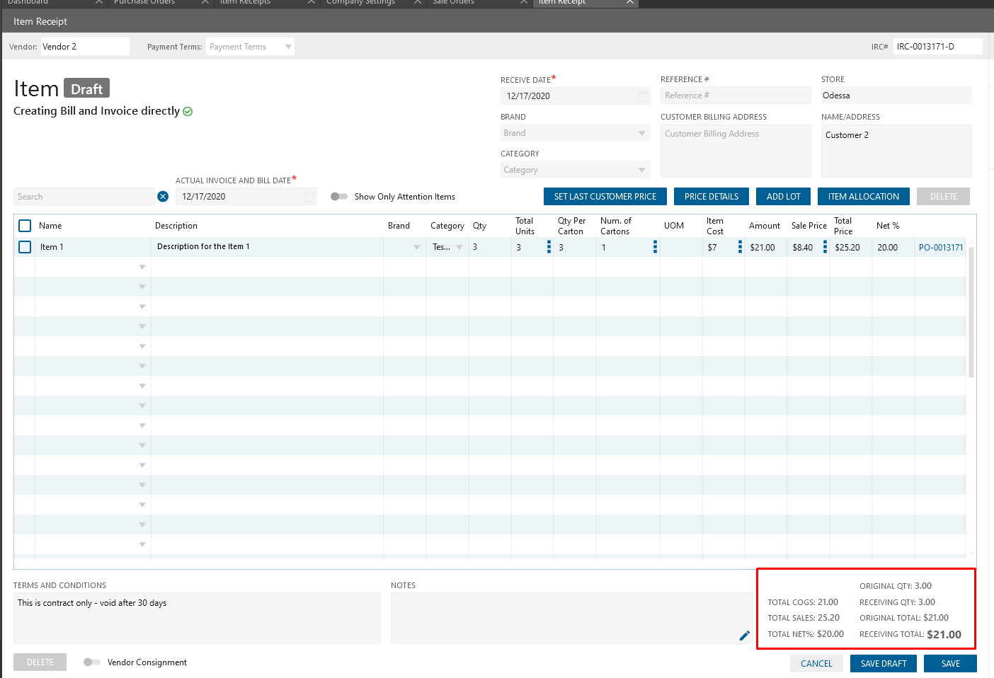 If Item receipt was created by “Create Receipt/Bill/Invoice directly” button, the total block should bet aligned