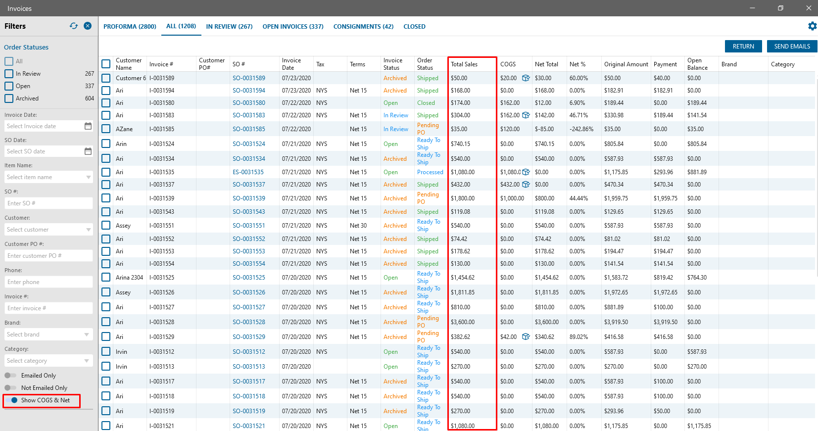 Total Sales column was added to SO and Invoice form. It shows the Order Total without Tax.