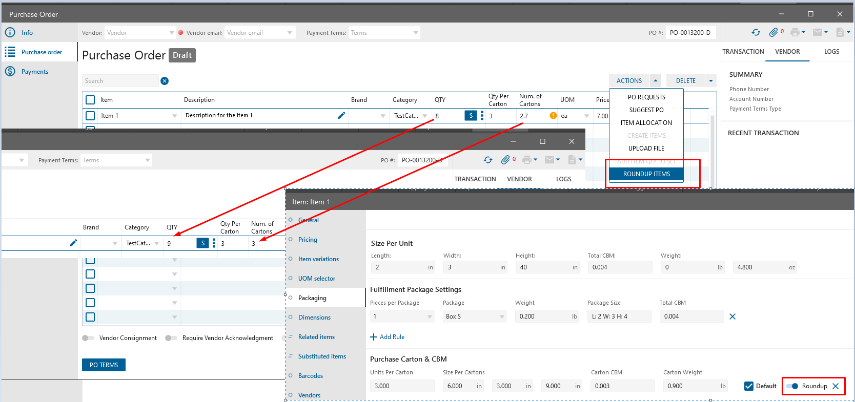 For applying this functionality “Roundup Items” button was added to the Actions multi-button on the following edit forms: