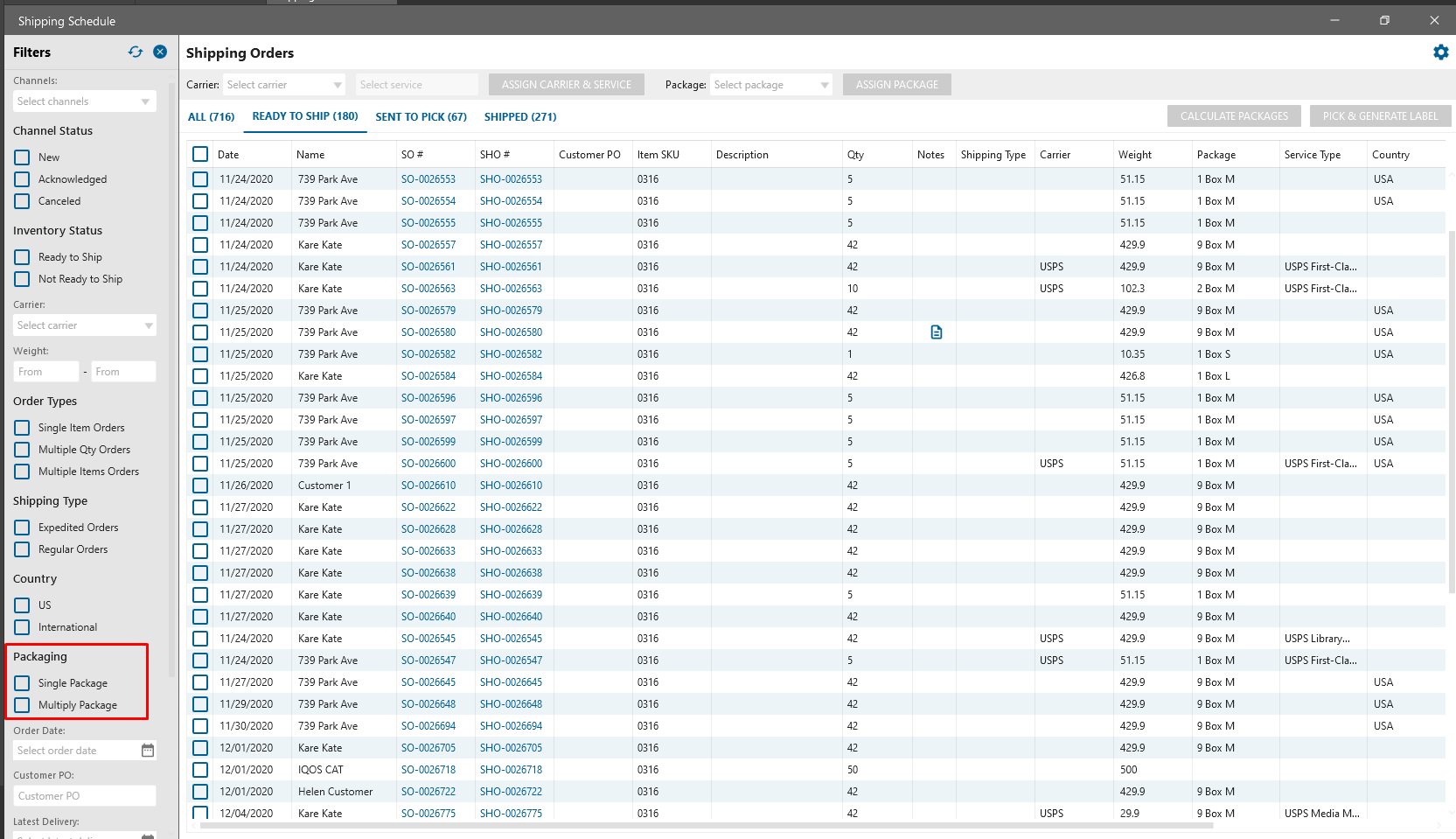 For the ability to filter ordersĀ on the Shipping Schedule for e-Commerce form by Single or Multiple packaging were implemented checkboxes: