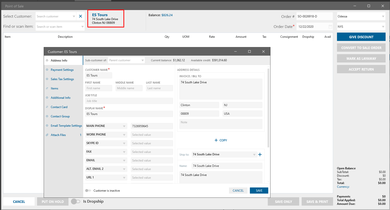 Customer address should be taken from the Customer edit form and displayed on the POS form correctly