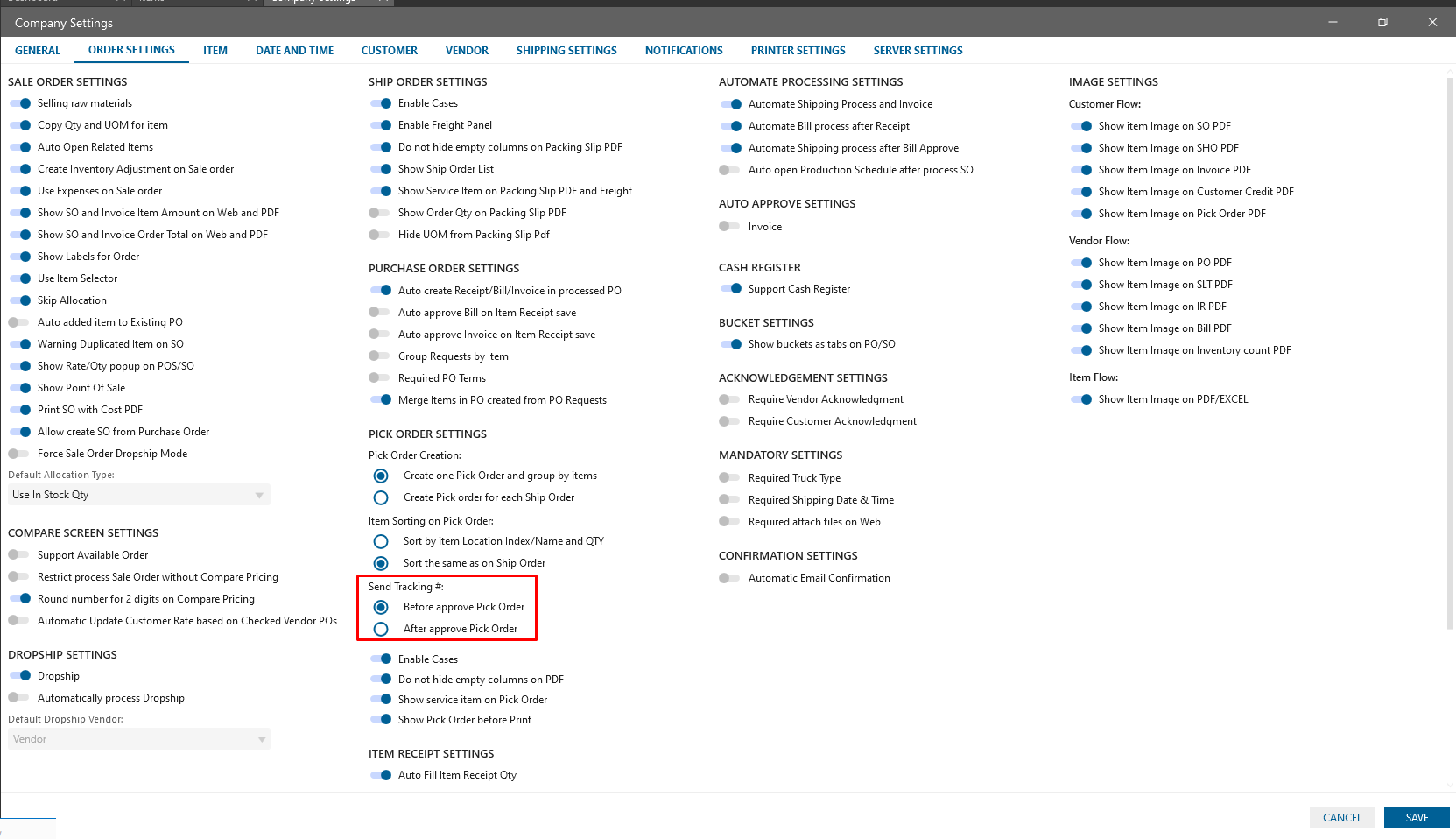 Moved tracking settings from Printer settings to Order Settings -> Pick order
