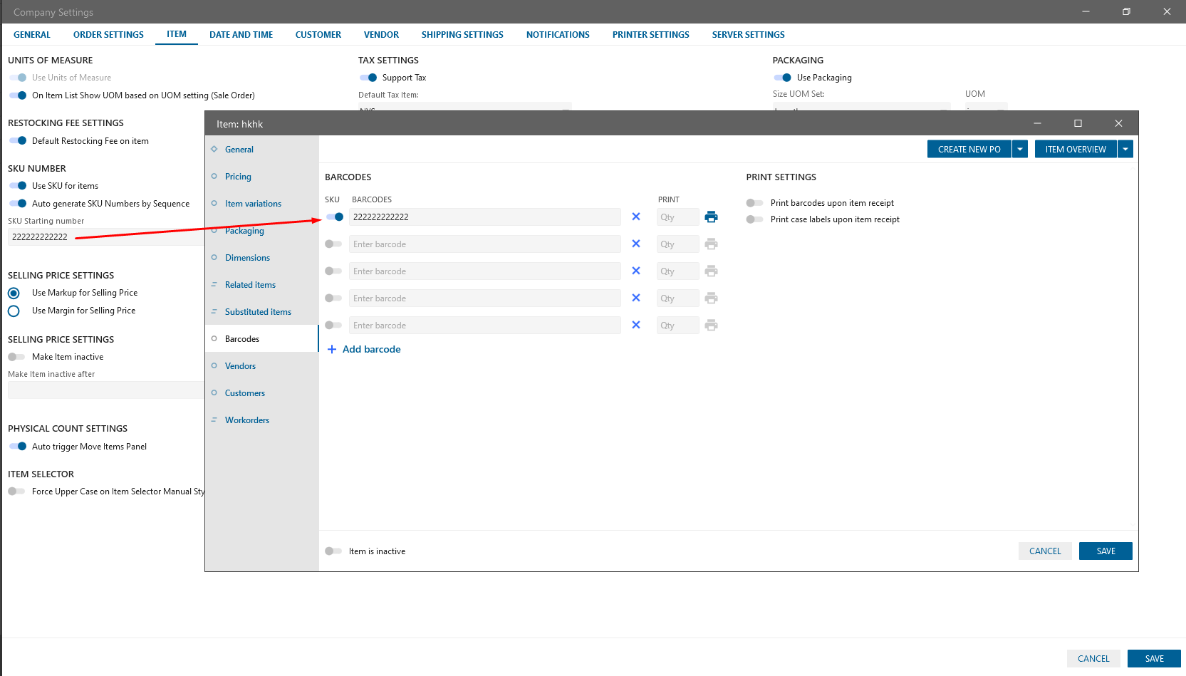 For the SKU autogeneration with starting Number on desktop and on web was implemented “Autogenerate SKU Number by sequence” checkbox in Company Settings -> Item