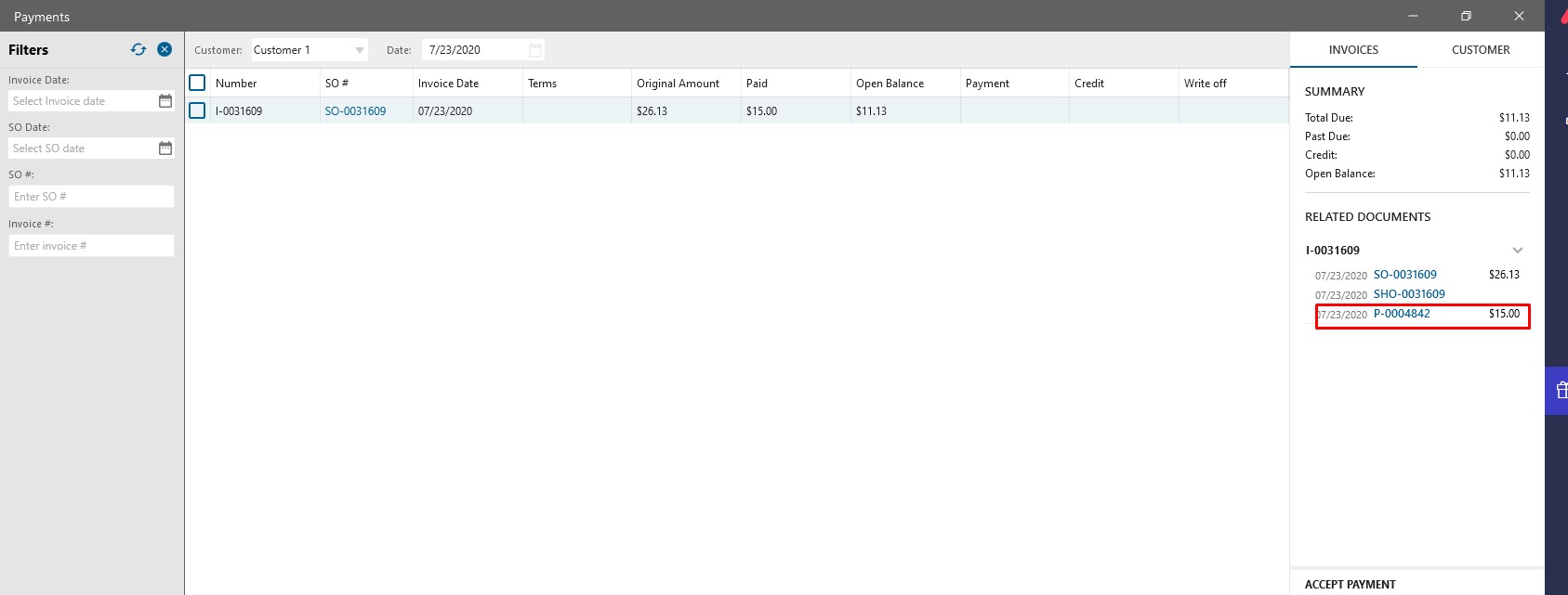 Added ability to navigate to Payment from Payments form in order Partial payment was made