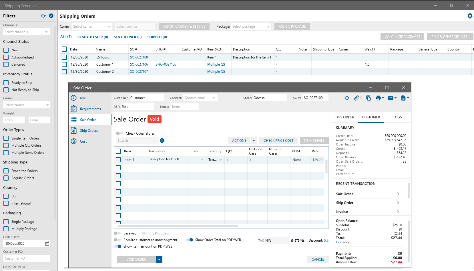 Expected result: Voided order should be removed from all buckets on the Shipping Schedule for e-Commerce form