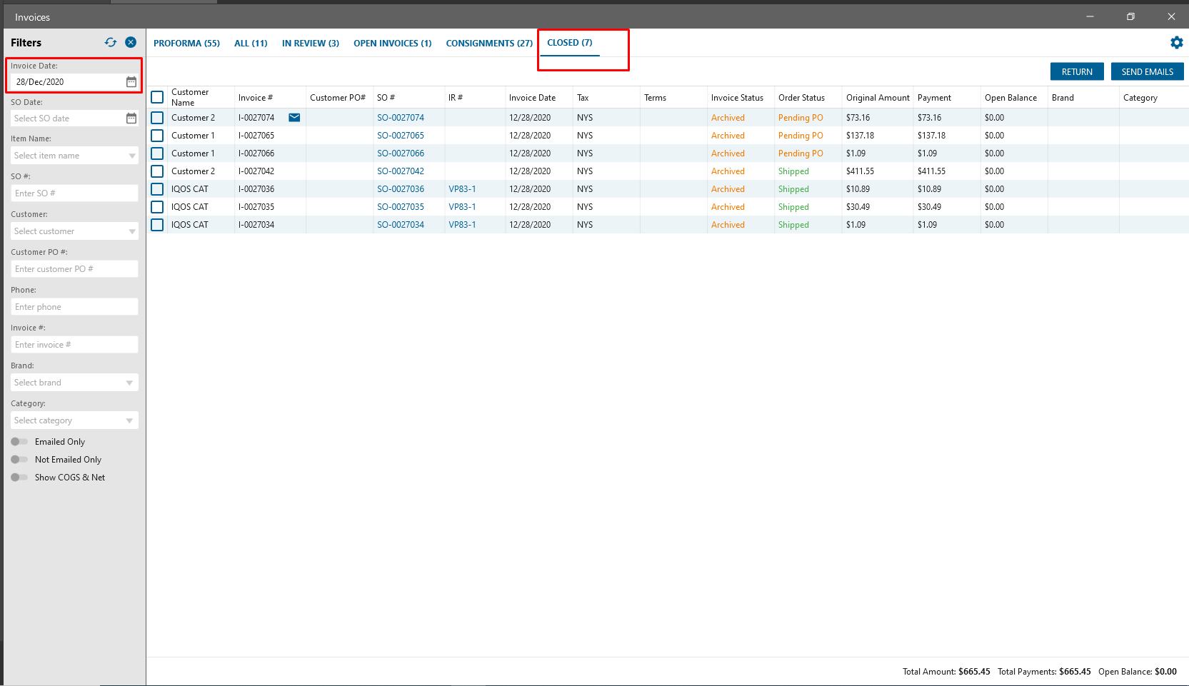 Expected result: Counter of filtered orders should be displayed at Closed bucket