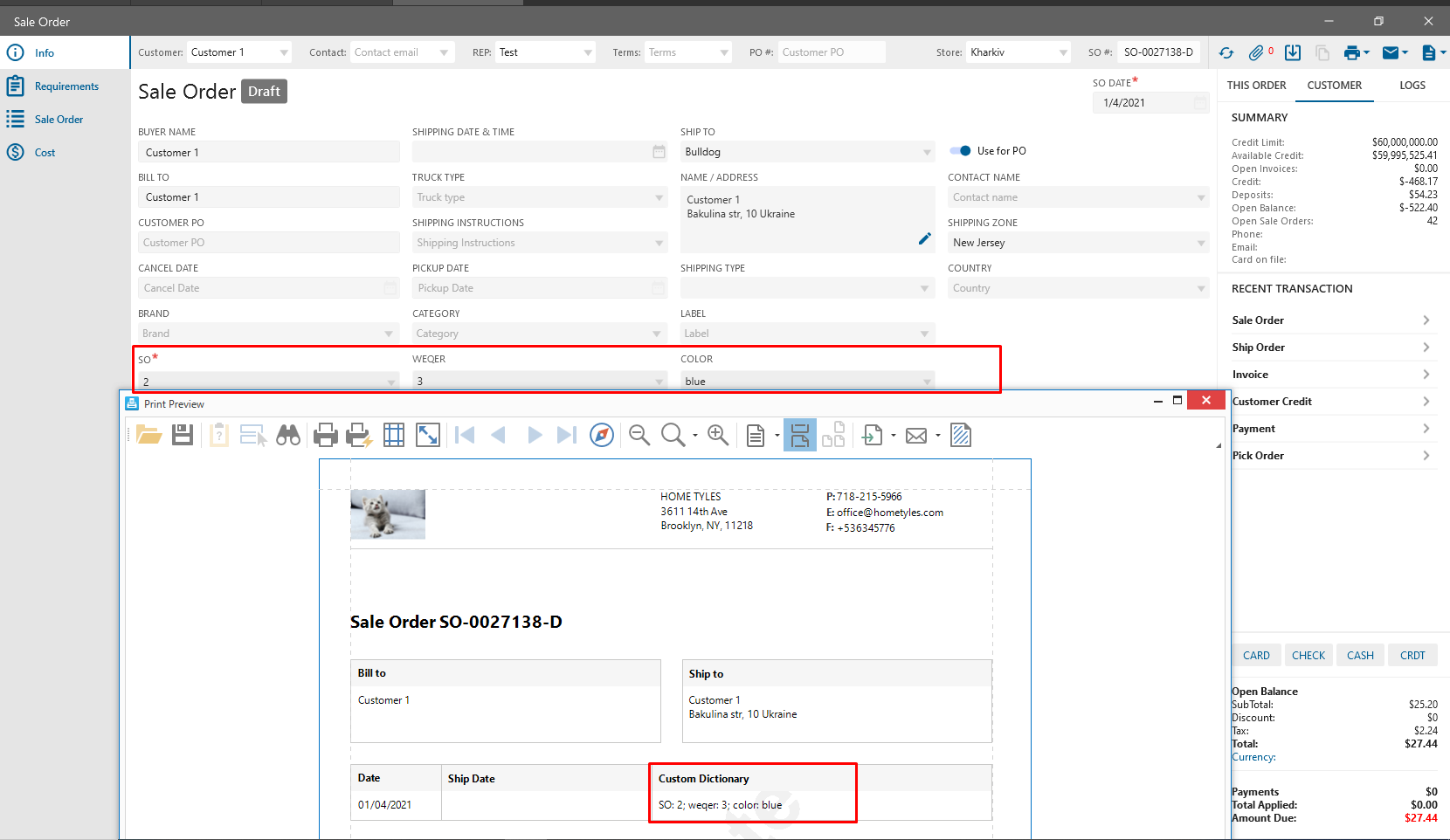 If a Custom Dictionary was added to SO it should be displayed on PDF