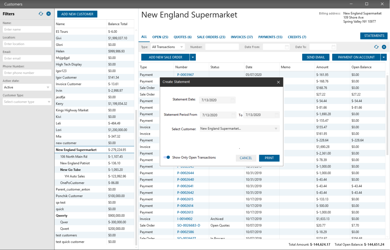 After setting up the parameters on the popup and clicking on the Print button PDF file is generated.