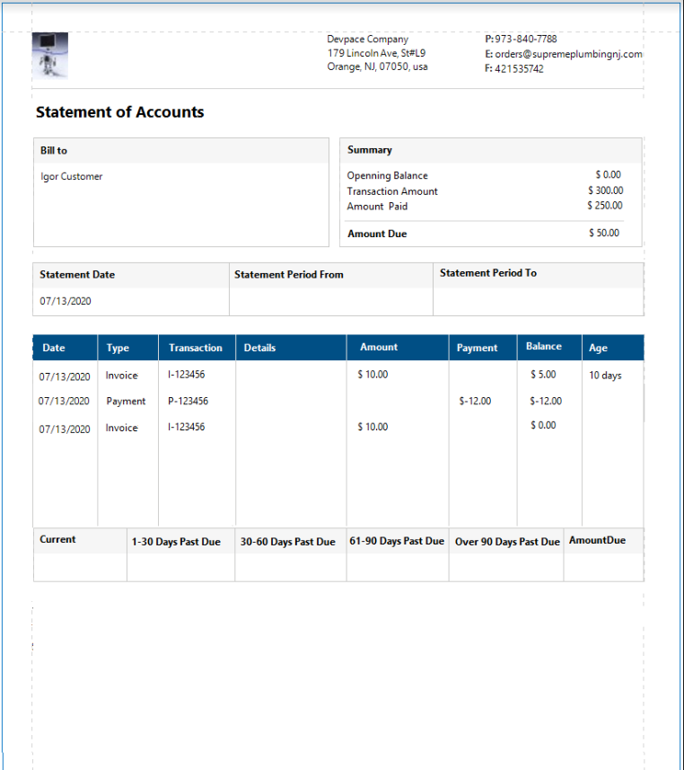 - Transactions for the current and past periods are displayed on the PDF file screen.