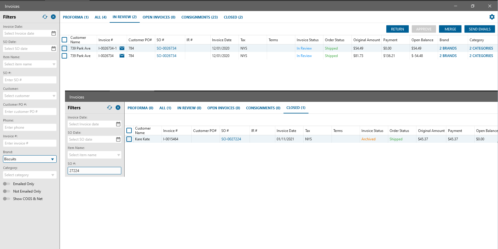 - Open Invoice list form → “Closed” bucket