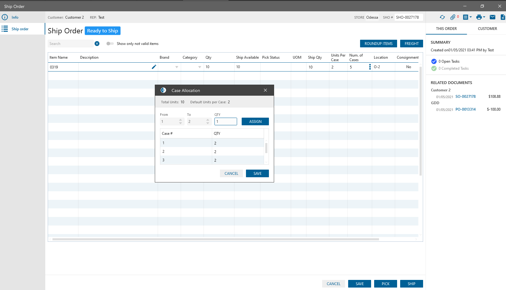 For assigning qty per cases based on a given interval, to the Case allocation panel on SHO were added the following elements: