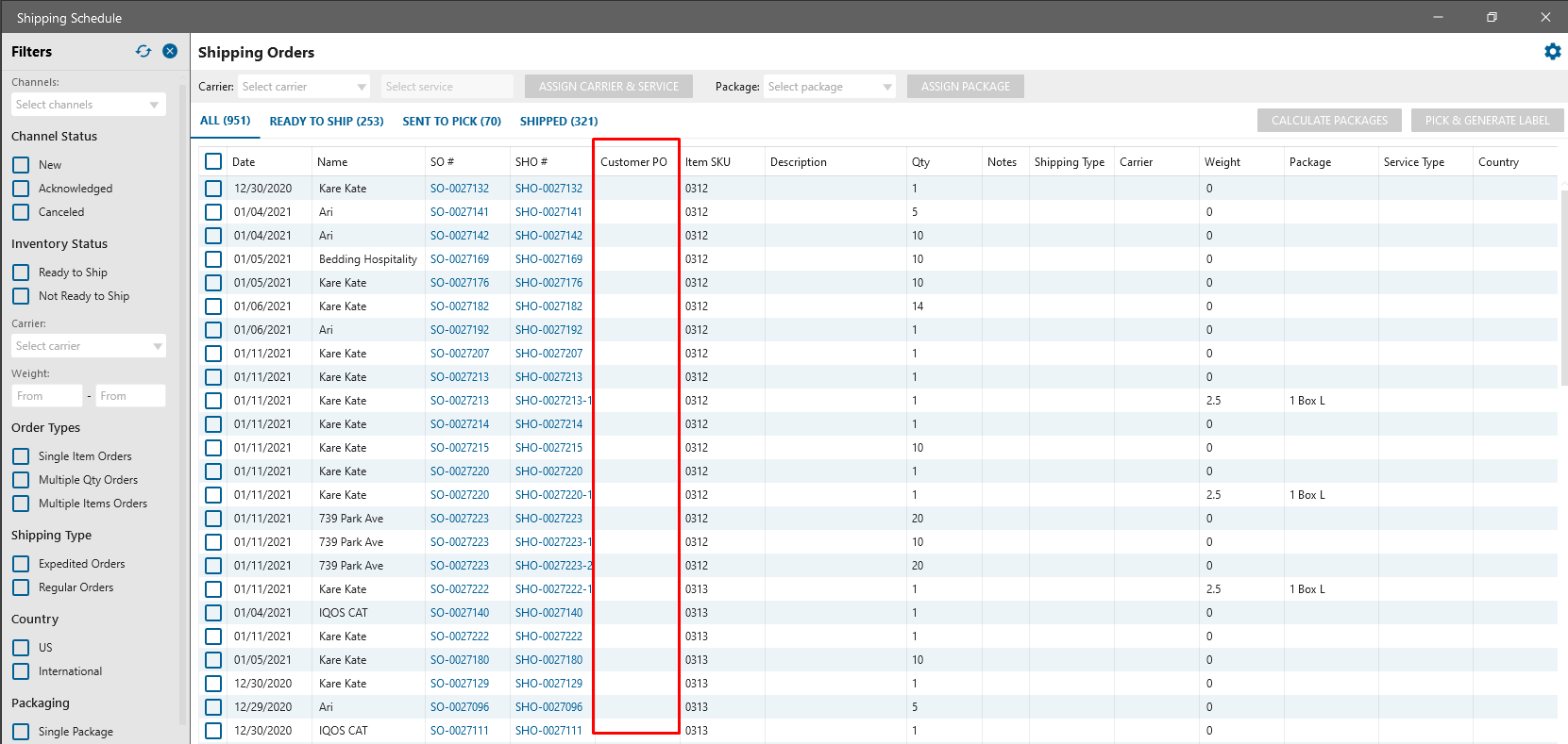 User is able to be aware of created Customer PO from Shipping schedule for e-commerce list form directly
