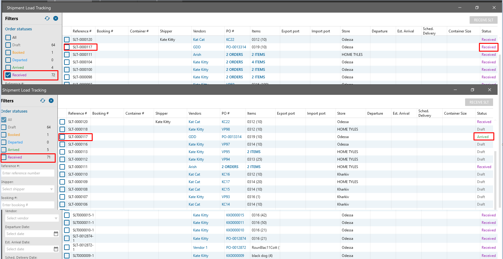 - Open SLT order in status Received