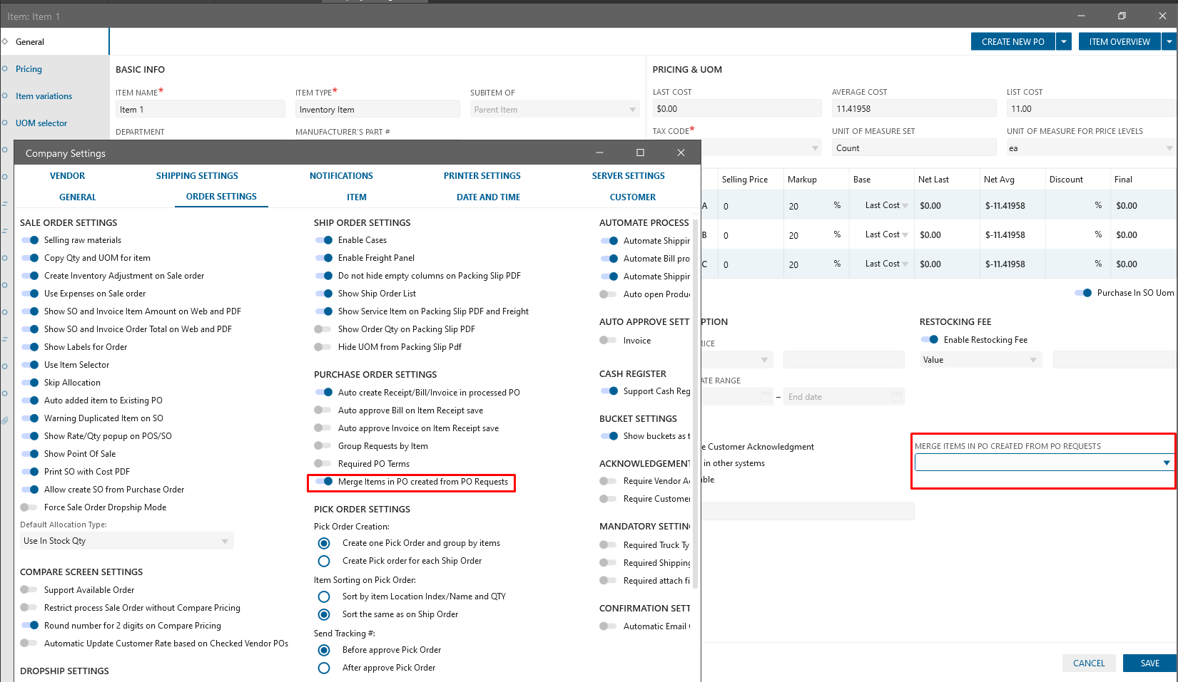 User is able to set the option to merge Items creating PO from PO Request