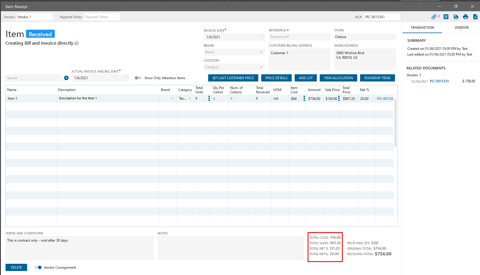 Added ability to be aware of the following Totals on the Item Receipt edit form: