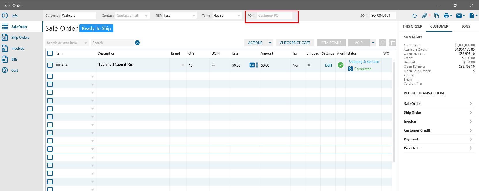 In order Sale Order contains Customer PO from Walmart / eBay / Amazon, this Customer PO number should consist of Walmart / eBay / Amazon Jolt order number